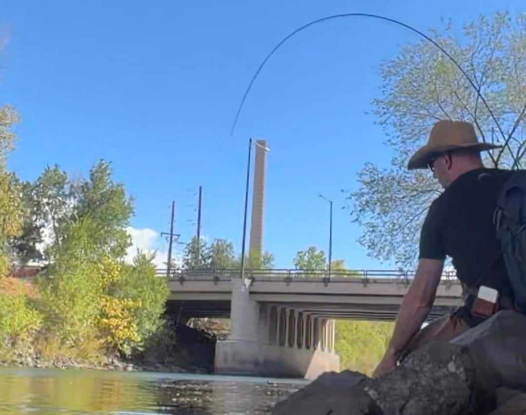 I was driving through Denver today and decided to stop to fish the DSP for the first time, since my 4wt was in the truck from the night before. I met a carp fisher (Mike? Mark? Sorry, bad with names) who told me where to find trout, and I was nearing being skunked when I tied on a San Juan worm. First cast and drift with it and I felt a take, but more gentle than expected for stocked trout…