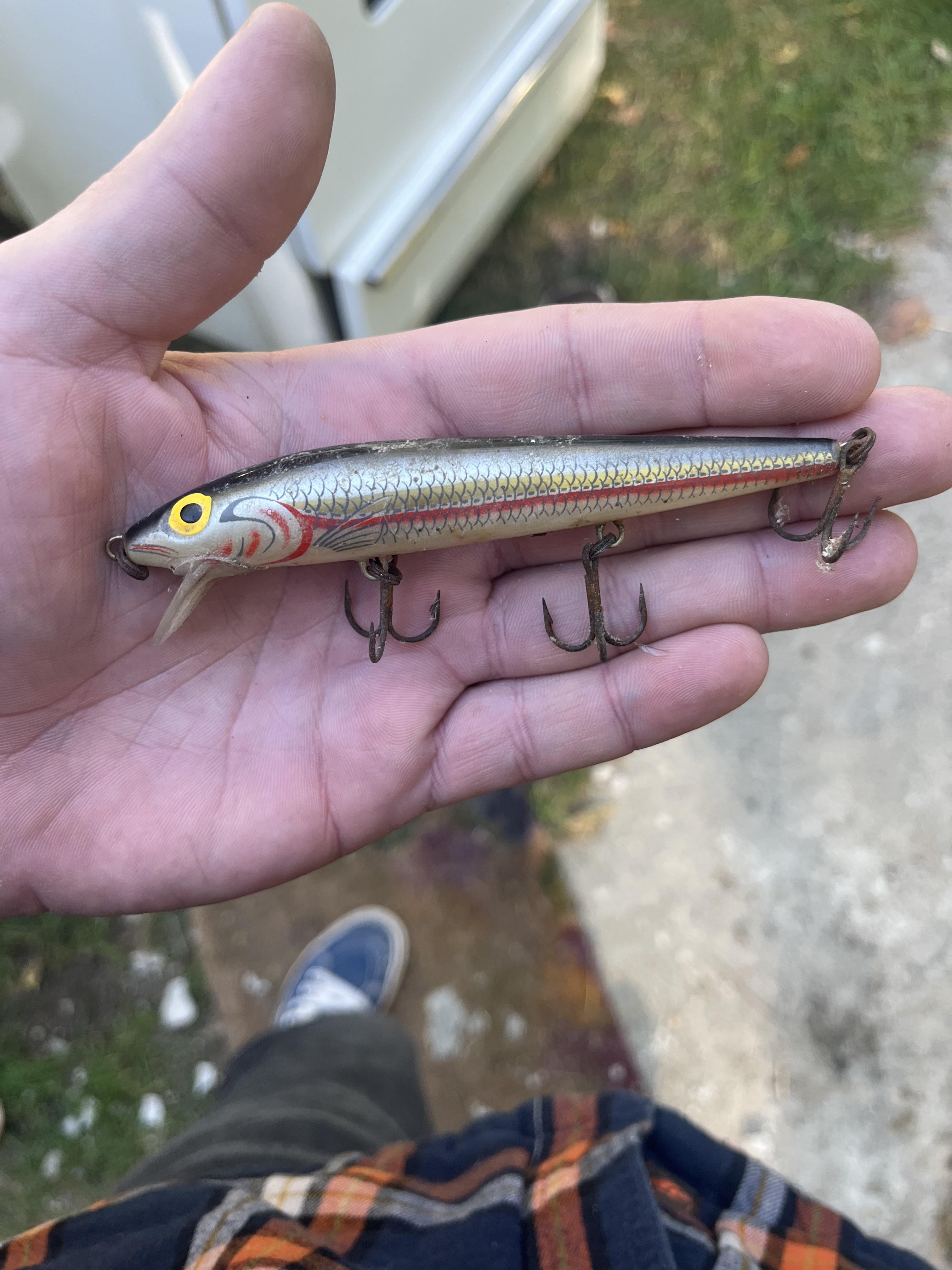 Bombastic_tekken on October 9, 2025 8:43 pm Looks like a Storm lure, perhaps a thunder stick, looks like blue steel shad color.