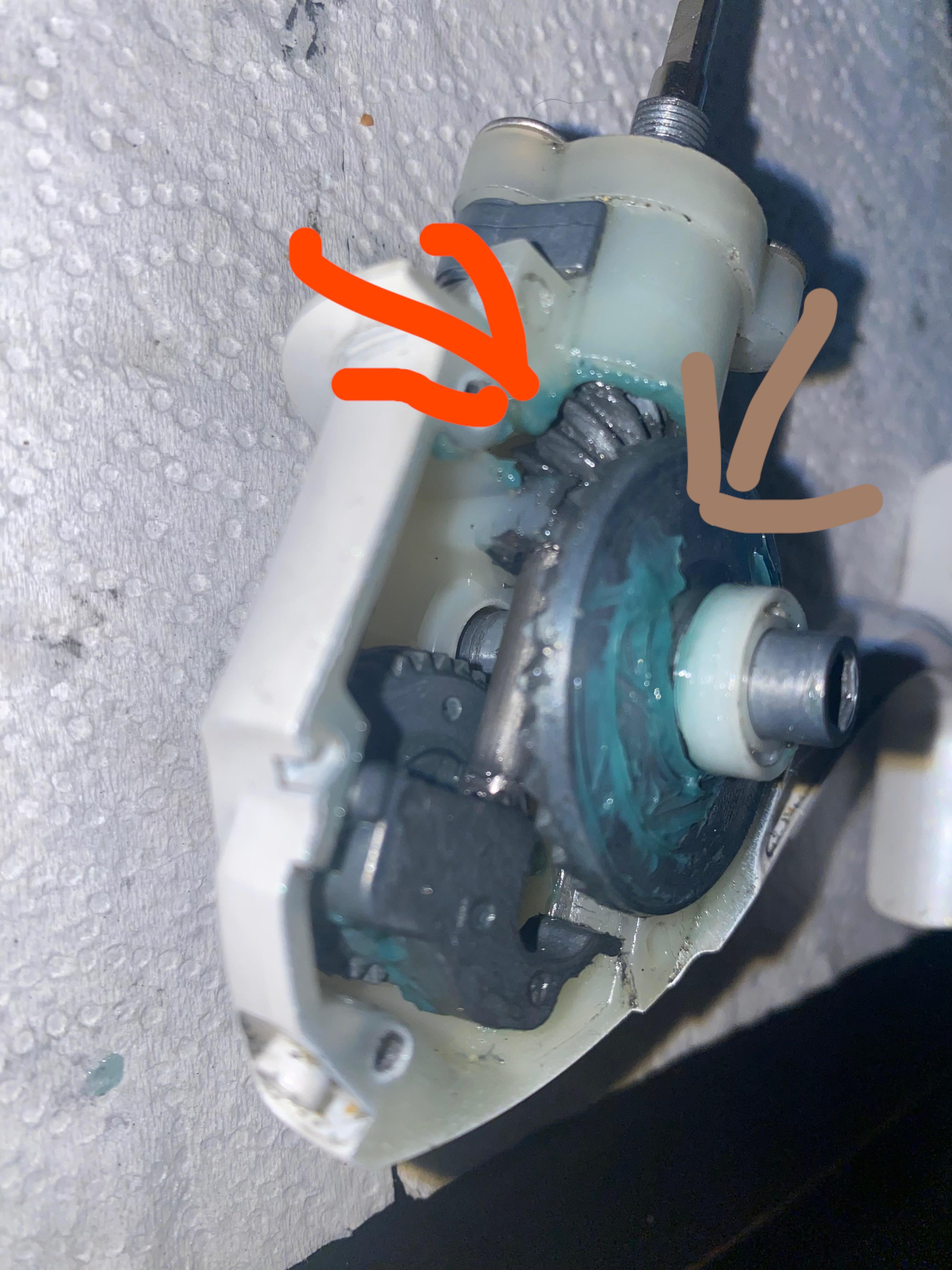 Forgot to say if I manually spin it on the brown part it works but when I close it and crank it with the handle it goes maybe a quarter of a turn and it starts grinding and I know it’s the orange because it doesn’t want to spin forward but goes perfectly fine backwards