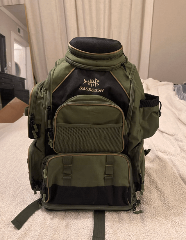 So my little sister surprised me with this Bassdash fishing backpack for my birthday after seeing my old tackle box was basically falling apart. Took it out to the lake yesterday and damn, I'm totally sold on this thing! No more digging around in the dark for lures. The hard bottom is clutch too, stands up straight on the bank instead of tipping over everywhere. Oh and it comes with this built-in rain cover – didn't need it yesterday but feels good to have that backup. Carries really well even when loaded up – back feels pretty comfy. She definitely knew what she was doing with this one. Highly recommend if you're looking to upgrade your gear!