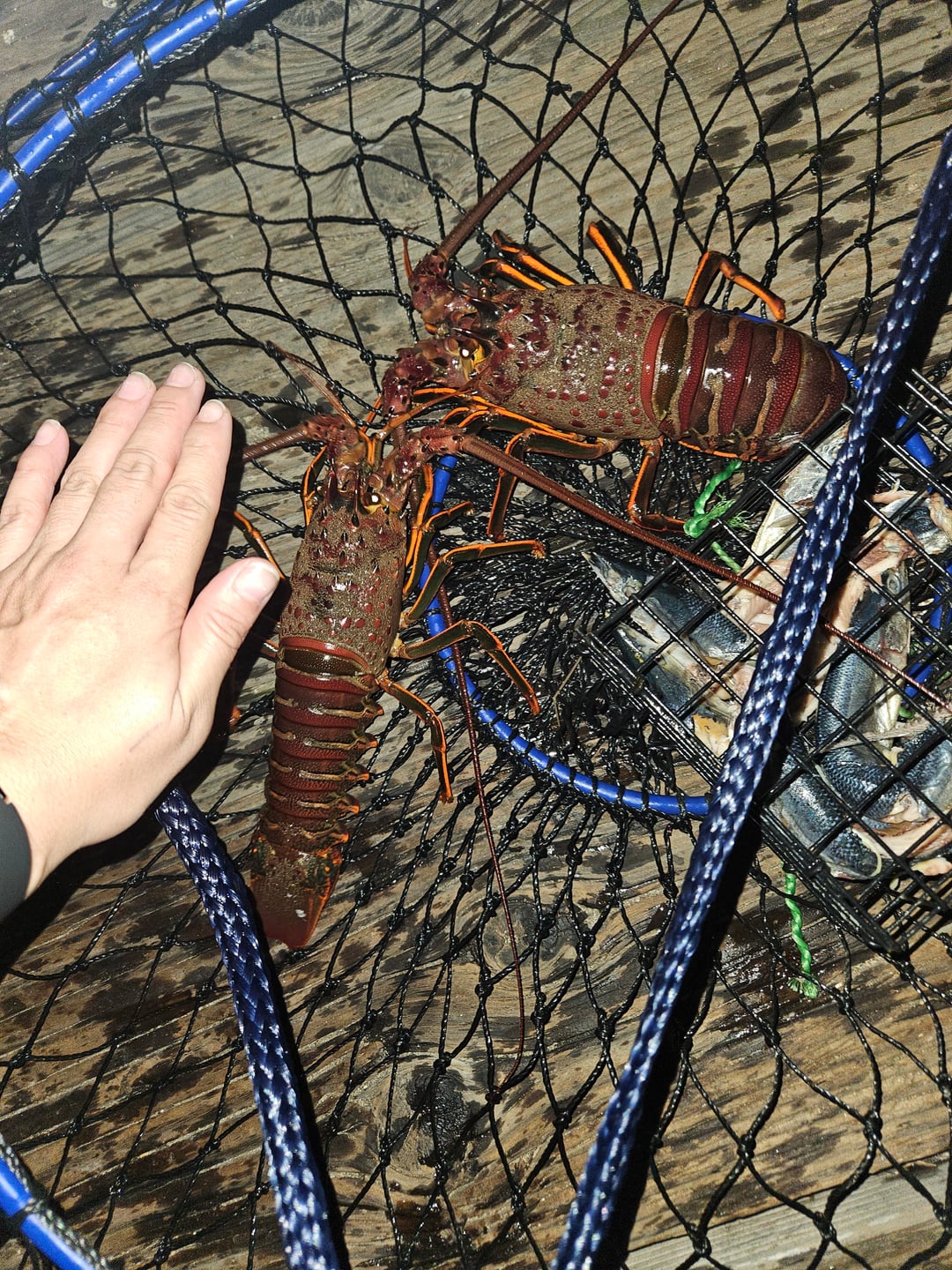 This is my second year lobster hoop netting in Ca. Any advice on how long I should leave the net and the best bait to use? I started using mackerel and leaving the net for 20 to 30 minutes but have not caught anything of size. Any advice is appreciated 🤗