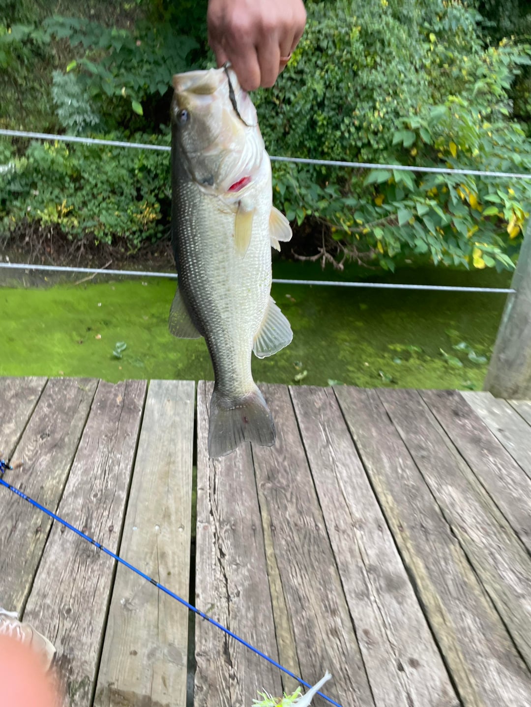 No scale yet but i definitely secured my biggest bass to date. I started bass fishing a few months back and im learning a lot. I caught this on a chartreuse chatterbait with a pearl fluke trailer. Saw some activity, so i casted past it and reeled my bait to the action. I paused briefly over where i thought he was and he slammed it!