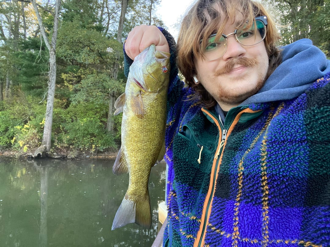 only started teaching myself to fish at the end of spring so i’ve been struggling adjusting my tactics now that it’s fall. trying to slow everything down and it paid off, caught this guy jigging a little soft plastic minnow along the bottom! i don’t weigh only measure and this dude came in at abt 14.5in, i’ve caught 2 ~14in smallies that might have been beefier but by length this guy takes the PB cake!!