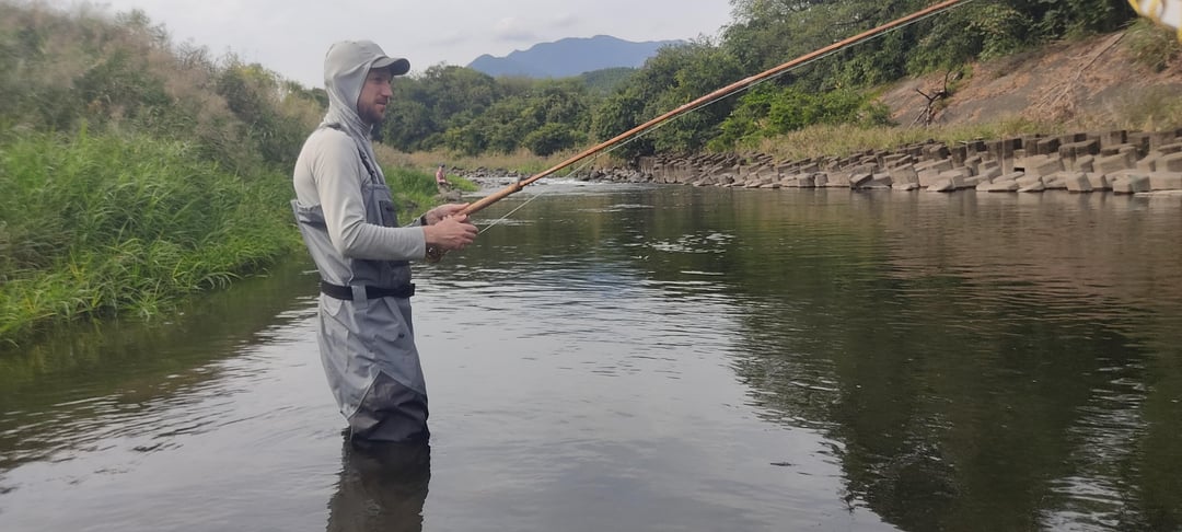 Recently decided to learn spey and went on a trip to Japan. Most of the rivers were closed but I caught this nice rainbow. I was using a traditional bamboo rod that my guide made. And yes I know I was choking that fish, I think the adrenalin and nerves had gotten to me haha.