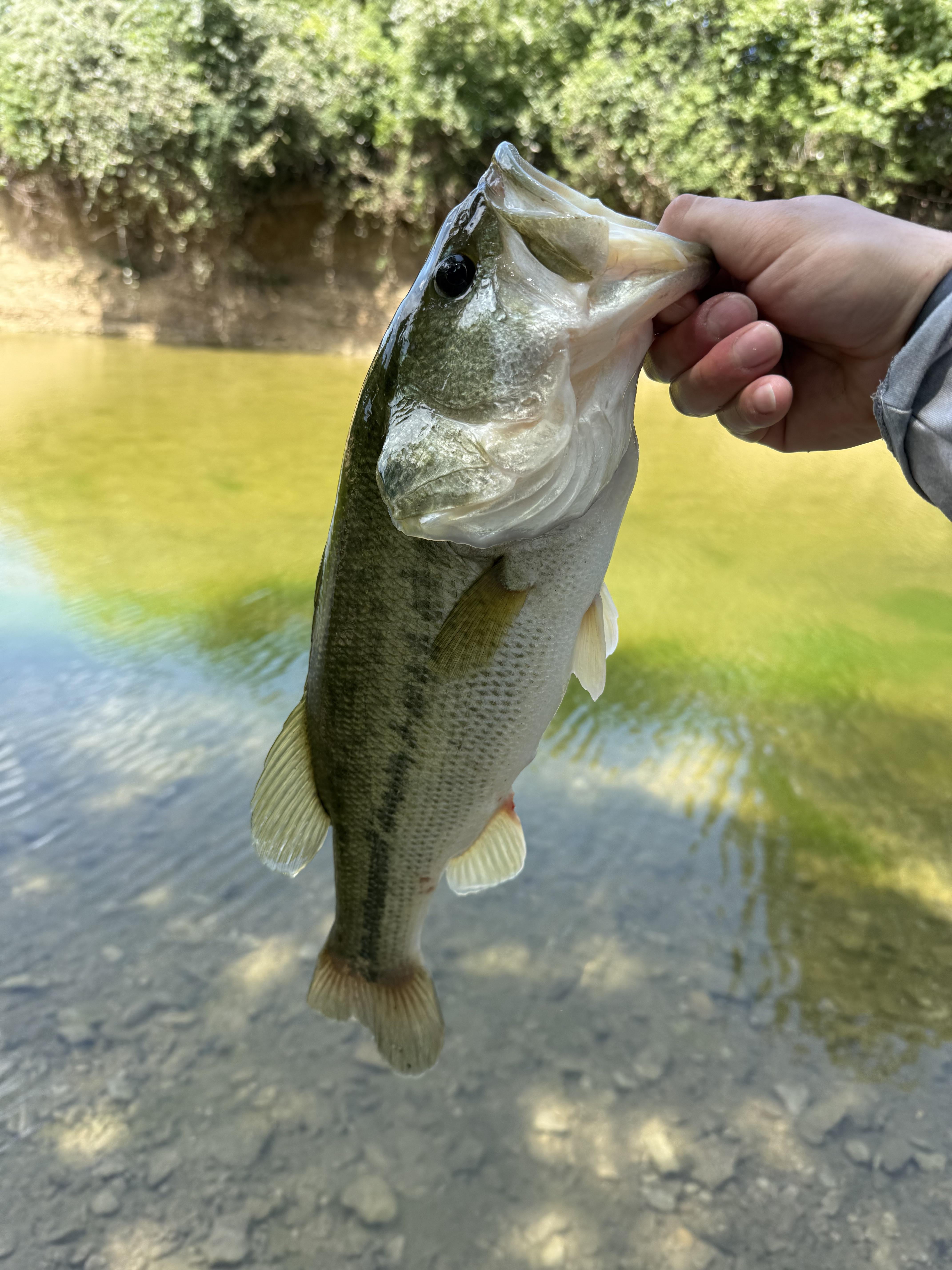 caught this guy in less than 5 feet of water in a deep pocket of a creek. definitely one of my bigger creek bass. Posted by bwcfunn09
