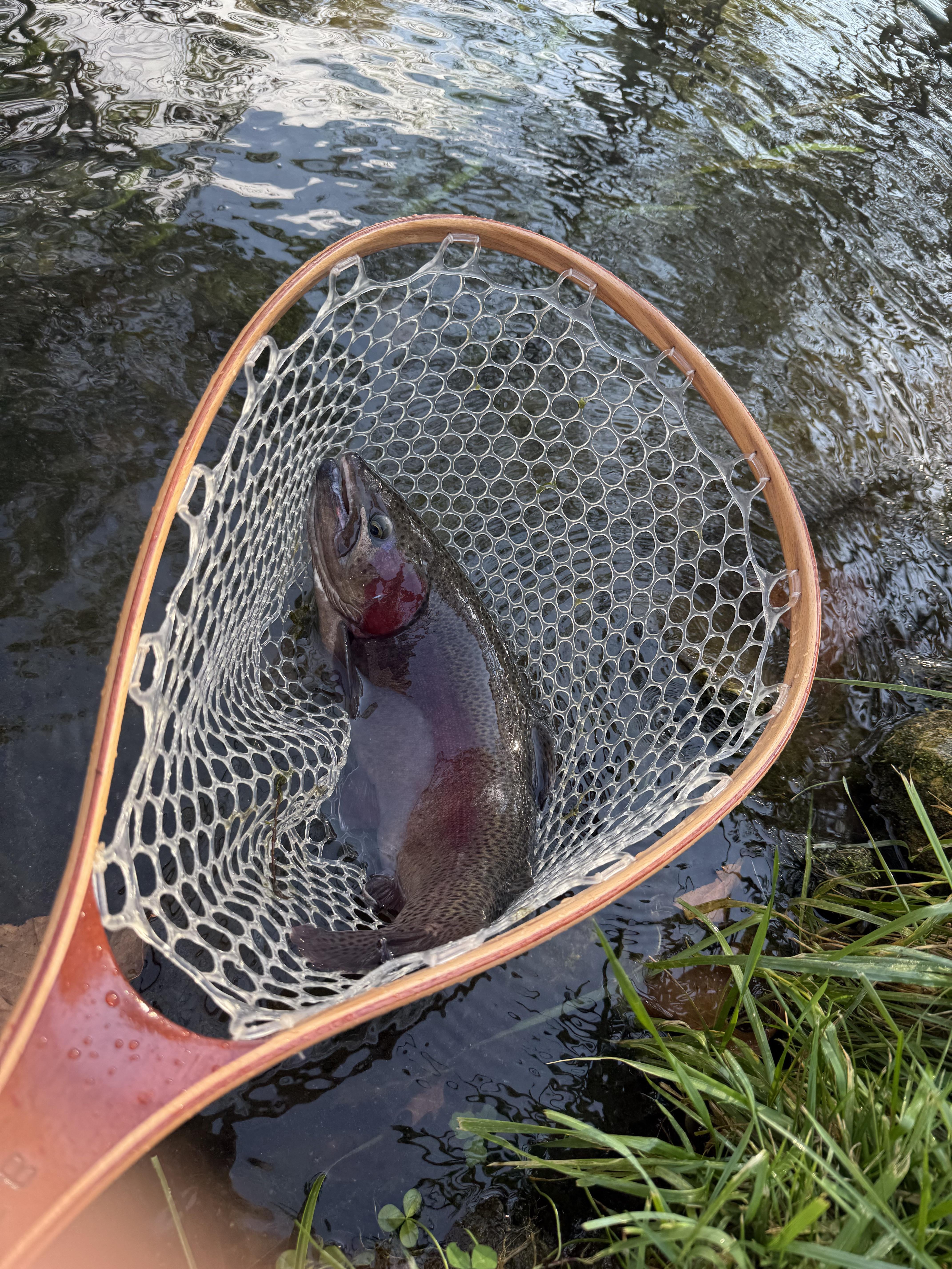Net pictures never do justice but he was 20+ inches and an absolute hog.Icing on the cake was as I was netting him he flopped real big and I fell face first into the river soaked head to toe, but like a cold beer I held him high and tight and kept it in the net. Montauk state park MO