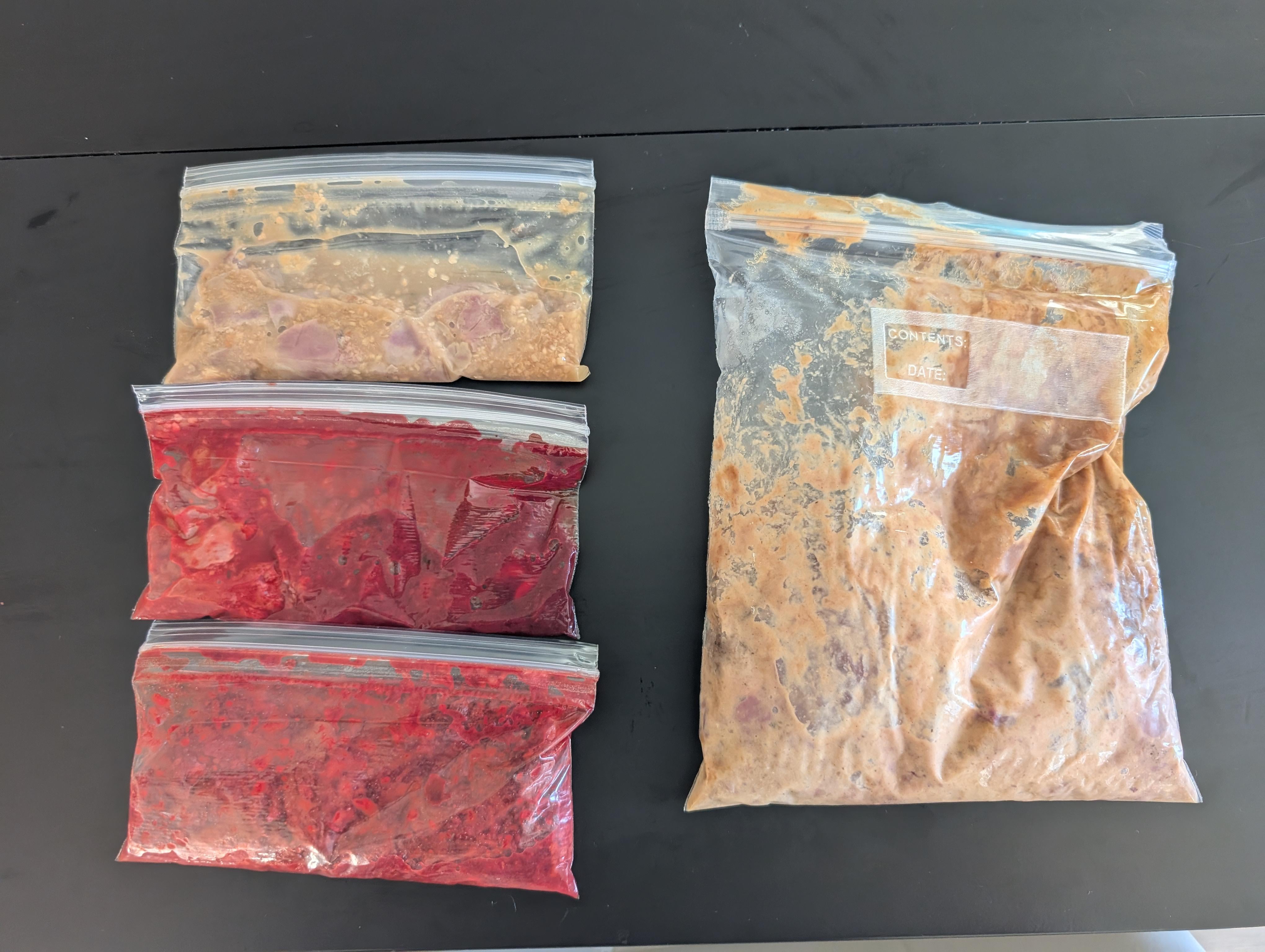 Bag 4: liver, garlic, sardines, peanut butter, and dough bait.