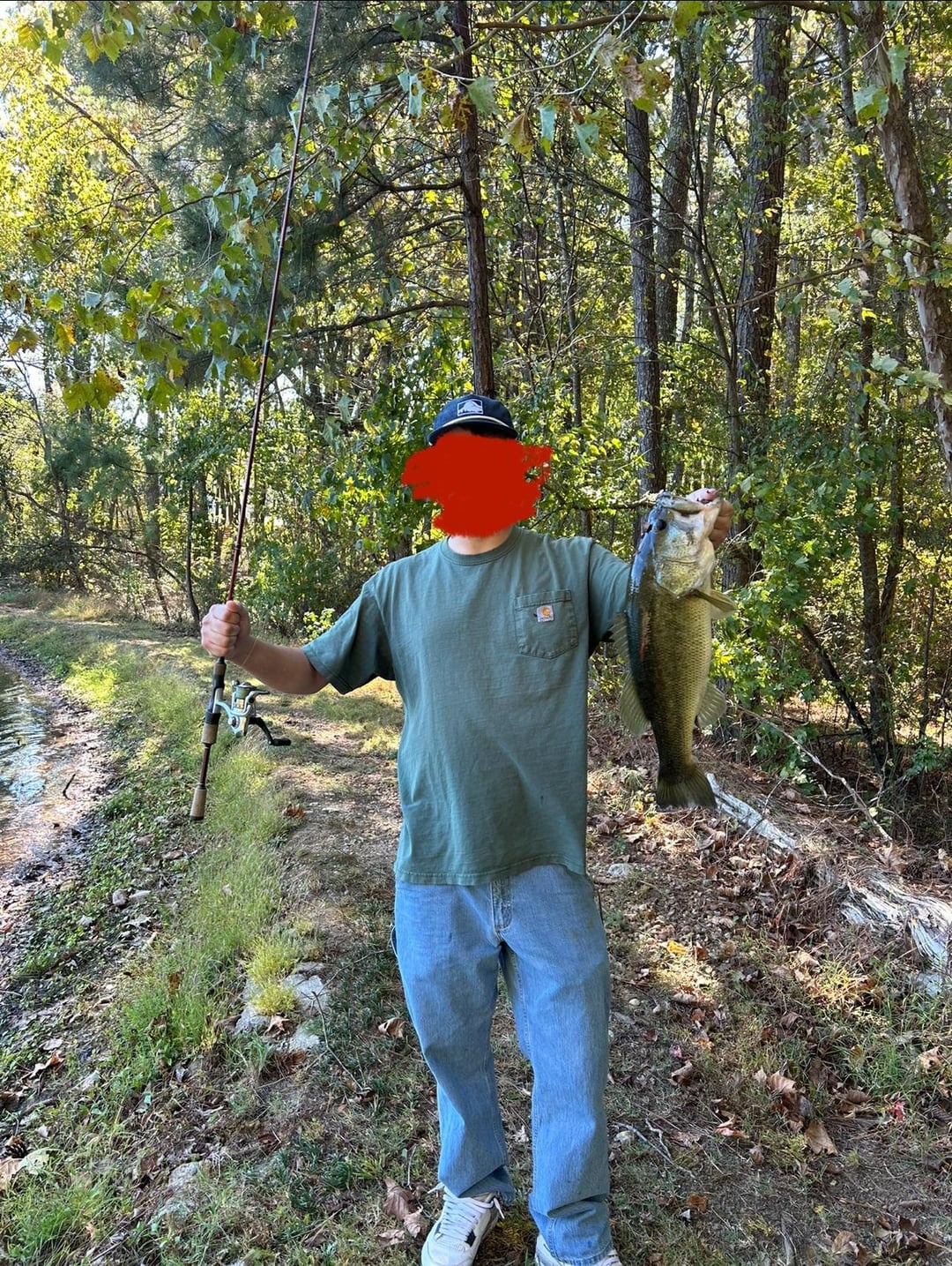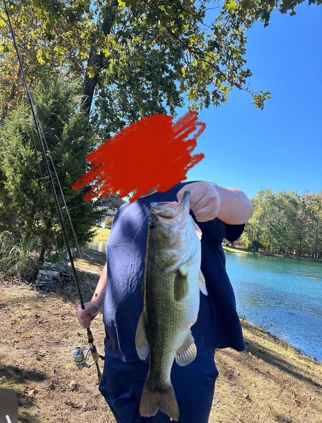 Little bro in blue . We crushed smaller guys but this was the highlight. Caught my pb out of here on a spinnerbait here a few months ago with my buddy that lives here , been trying to get my brother on them since! Today was the day, feel like this was a great way to spend a fall break bday !