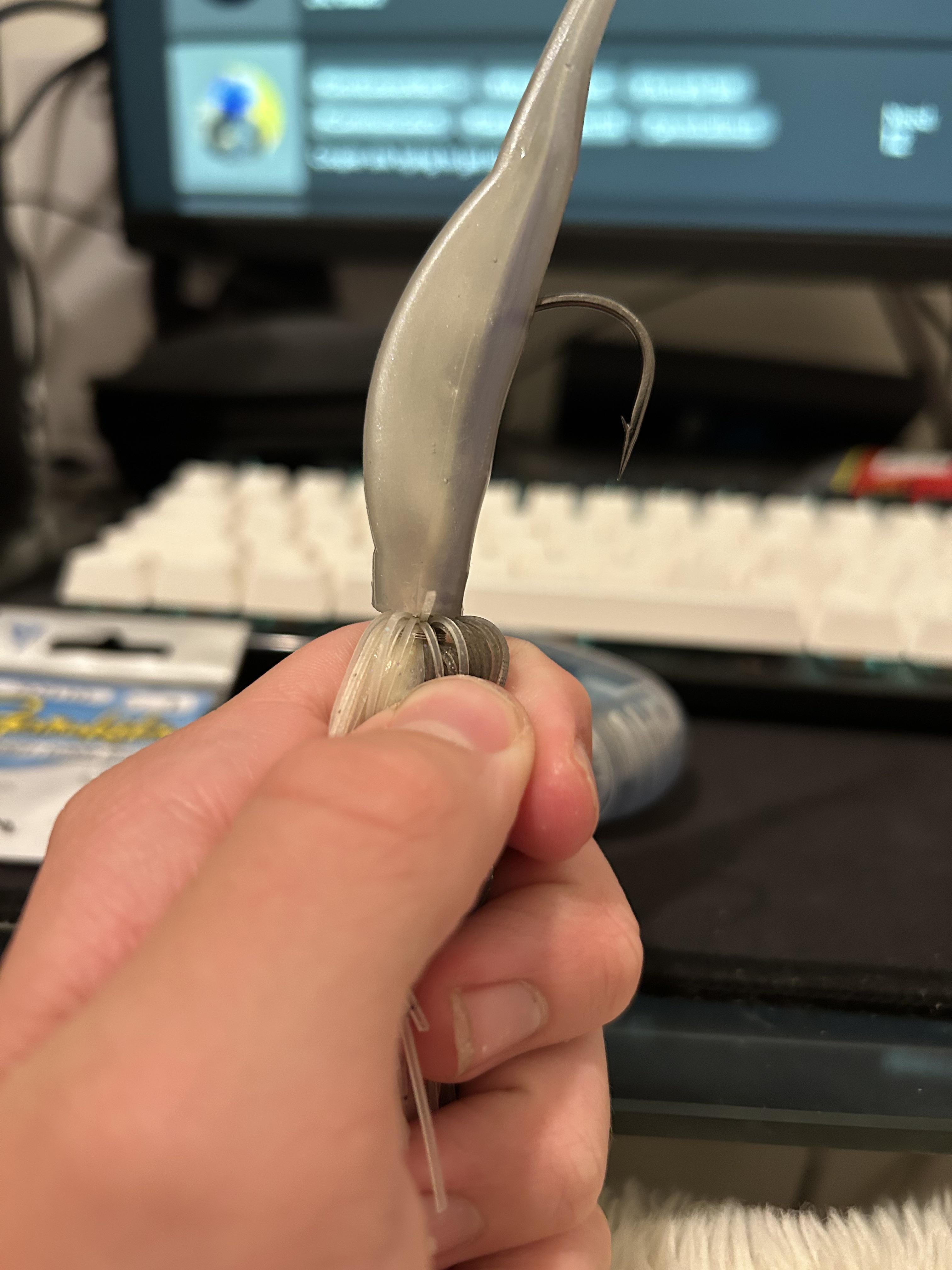3. One of the nice things about fishing with soft plastics often is that when they get too torn up to use on their own often they can be cut up and used as a trailer on a jig like that