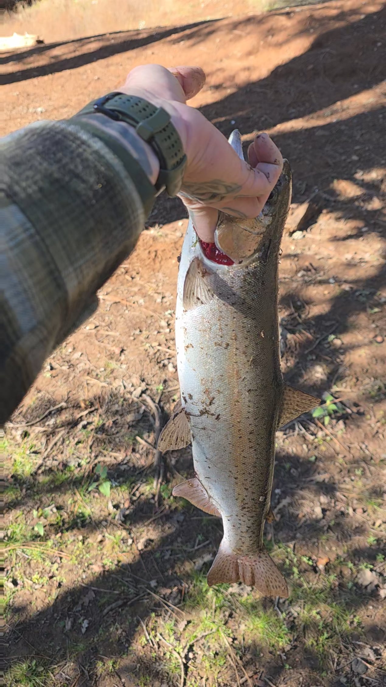 Pardon my language I the video, I was excited! Caught this sucker on a bass swim jig! Did not expect a big guy in the small reservoir i was fishing! For reference, im a big guy and I wear size 13 boots. This guy was roughly 2 boots long! Not sure what that is in inches, but weighed a solid 4 or more pounds