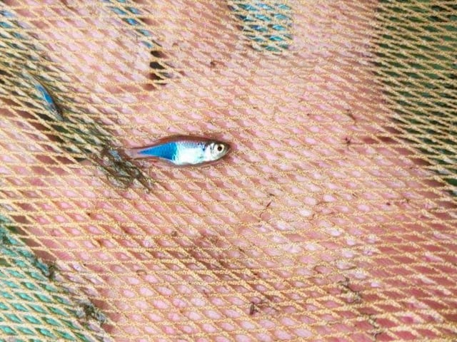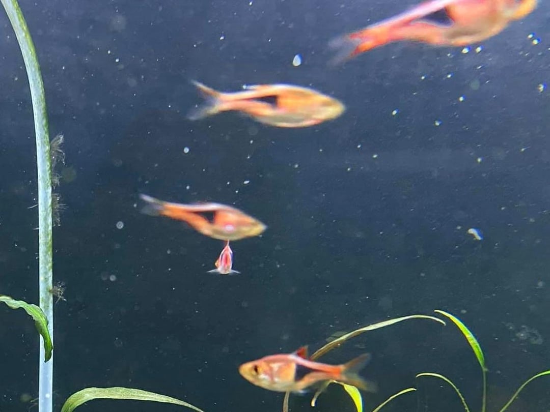 Tiny 1.5” fish and shrimp, caught from a shallow acidic stream