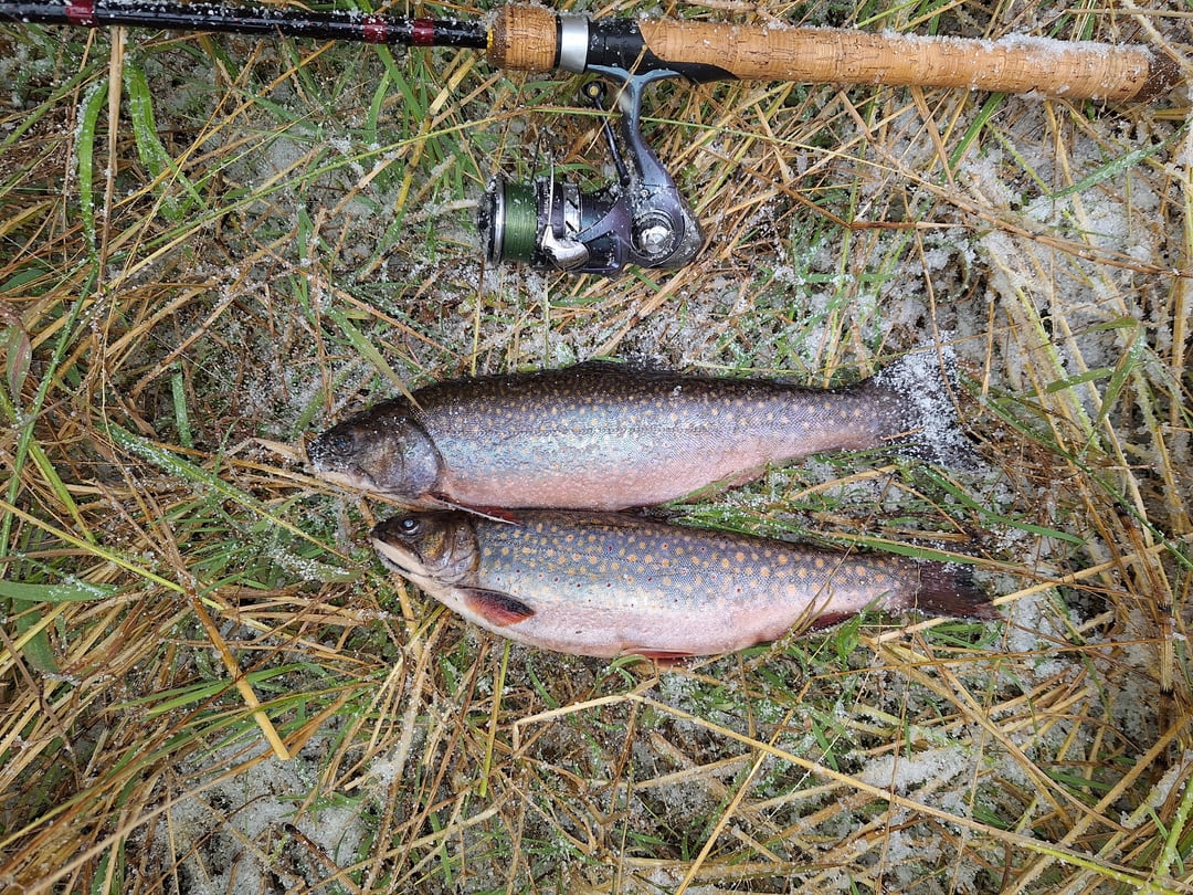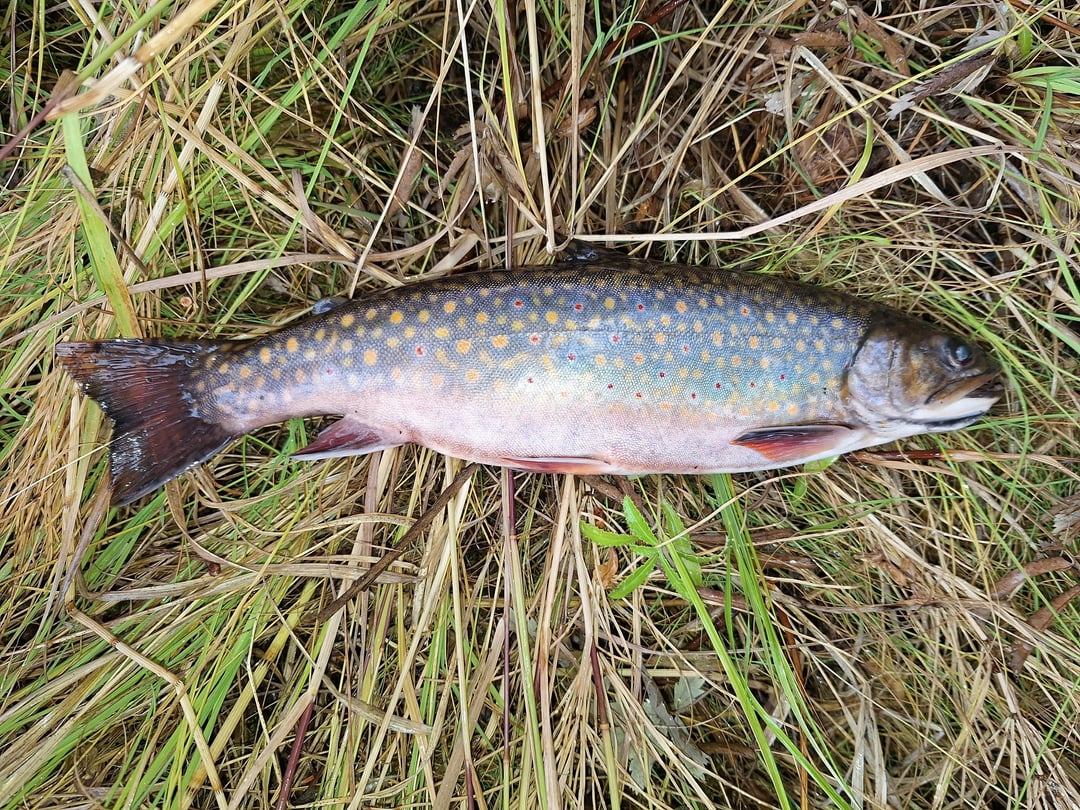 Received the full spectrum of fall weather with raun, hail, sleet, snow, thunderstorm and high winds… but it made for excellent fishing! Caught four brookies and kept two of 'em for dinner. Posted by grooverocker