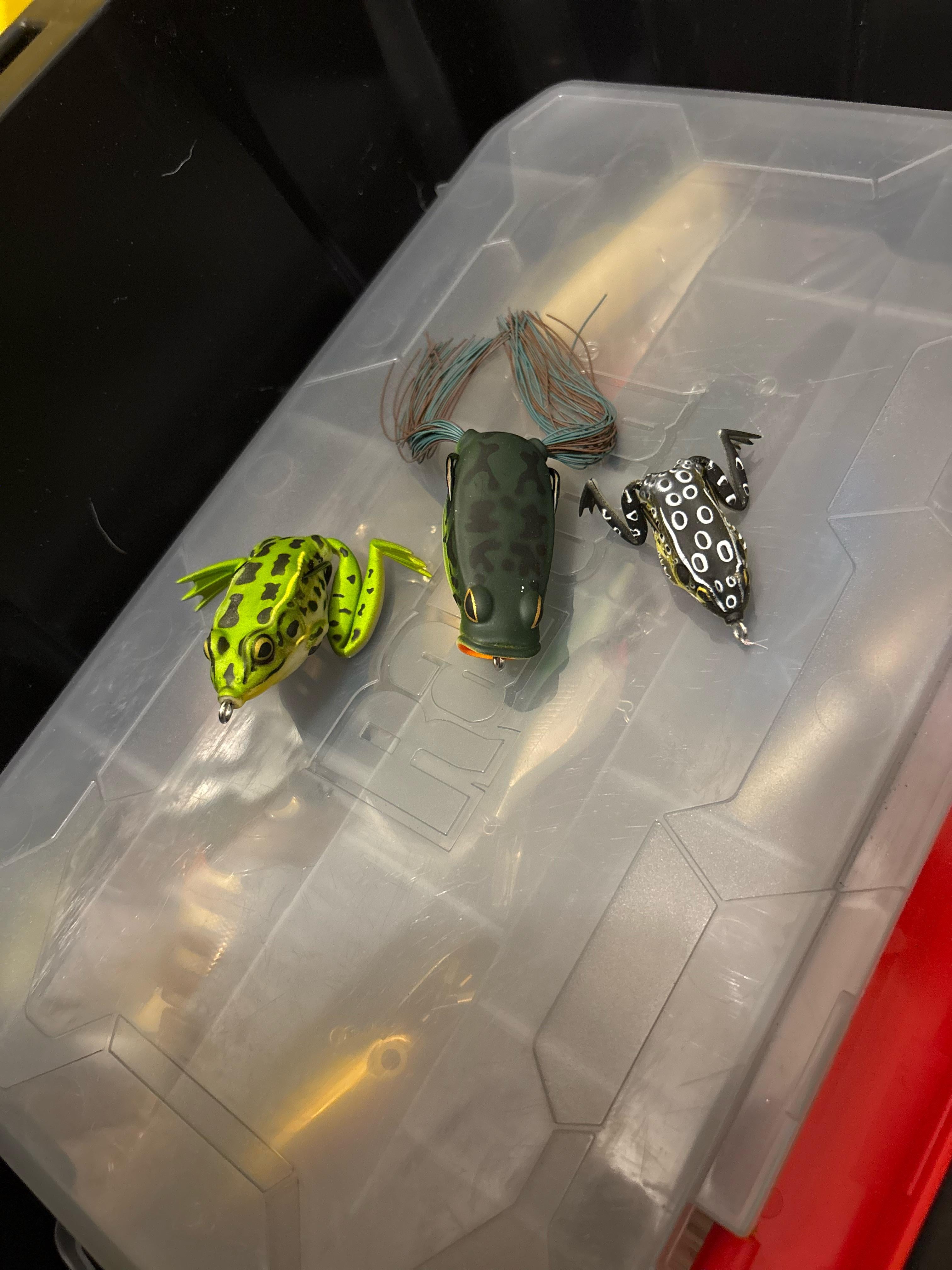 Is there a top water frog smaller than the dark Lunker Hunt on the right?
