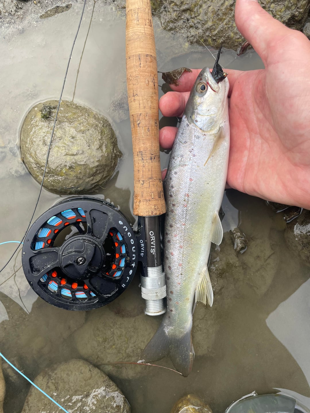 They exist! I finally got two brown trouts with a small black streamer. They were in slow waters close to the main current and behind rocks. I’ll definitely try again with nymphs, I think I’m understanding where they hang out and water is getting colder. Than you all for your tips!