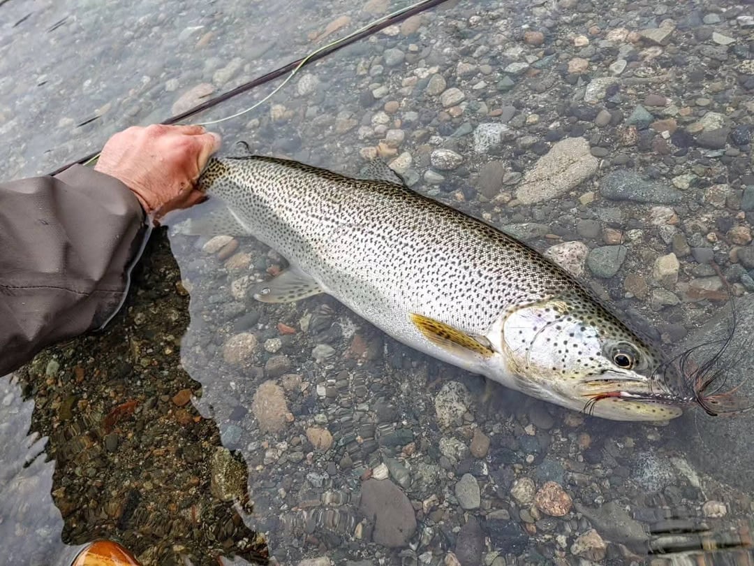 Nice fish!. Beautiful fly too. We have a cabin in the puget sound over thanksgiving. I was planning on bringing my trout spey to try to target these.
