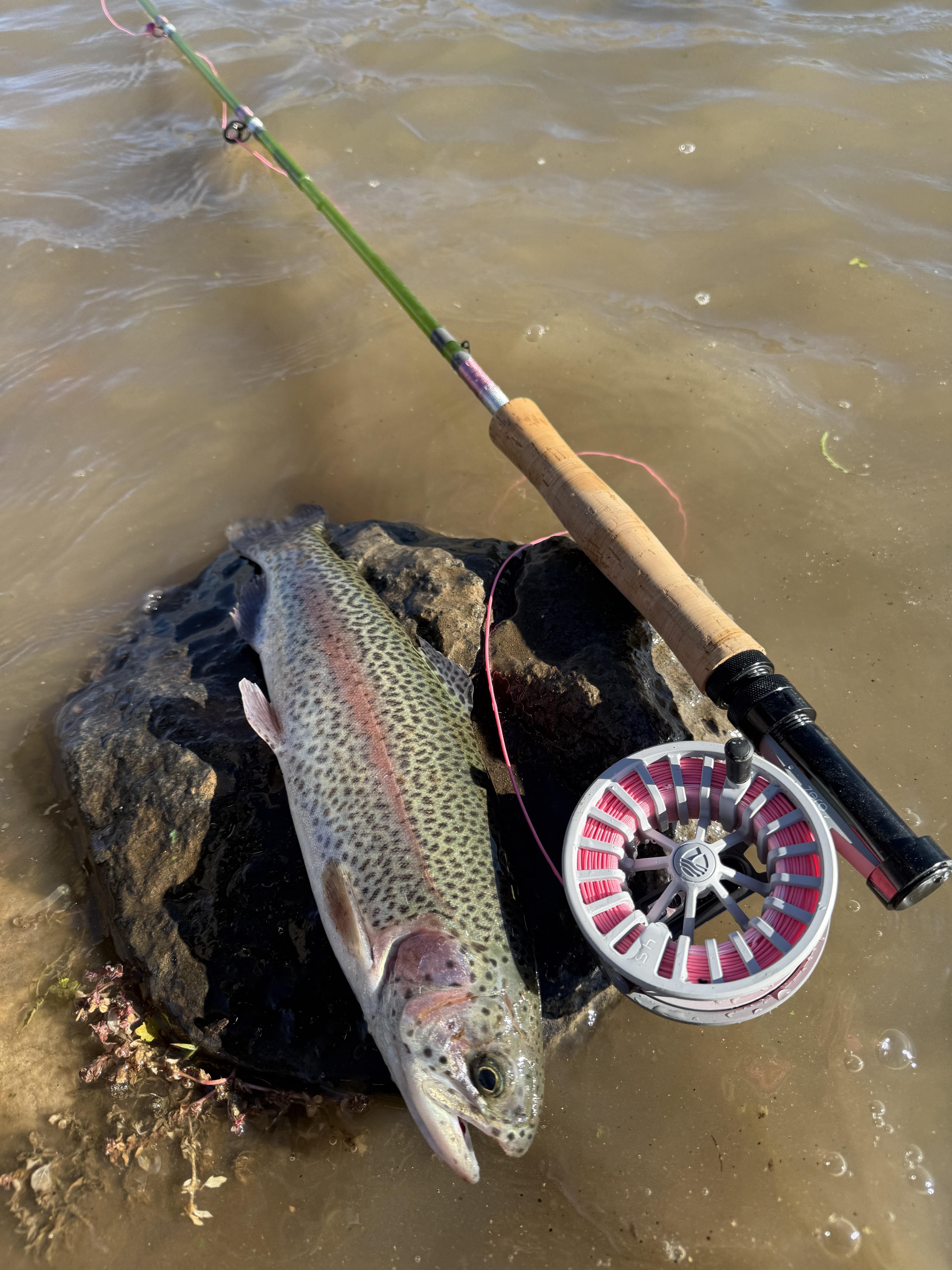 First rainbow on my “rainbow” fly rod I built