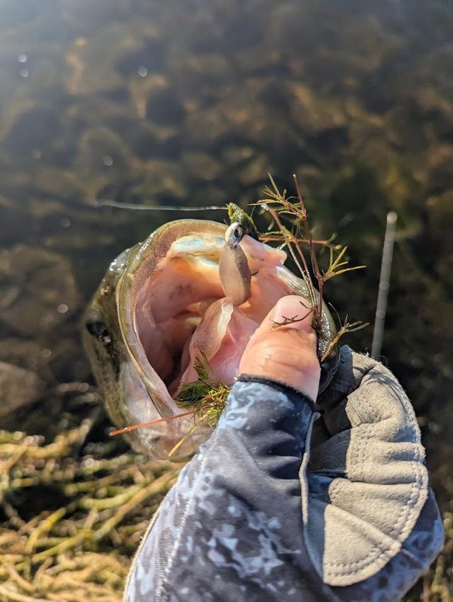 Ate a 2.5" Mayor in shallow grass. Dobyns SUF 701C + Aldebaran BFS, 6lb Fluoro, 1/16oz crappie head. Posted by peacedivision