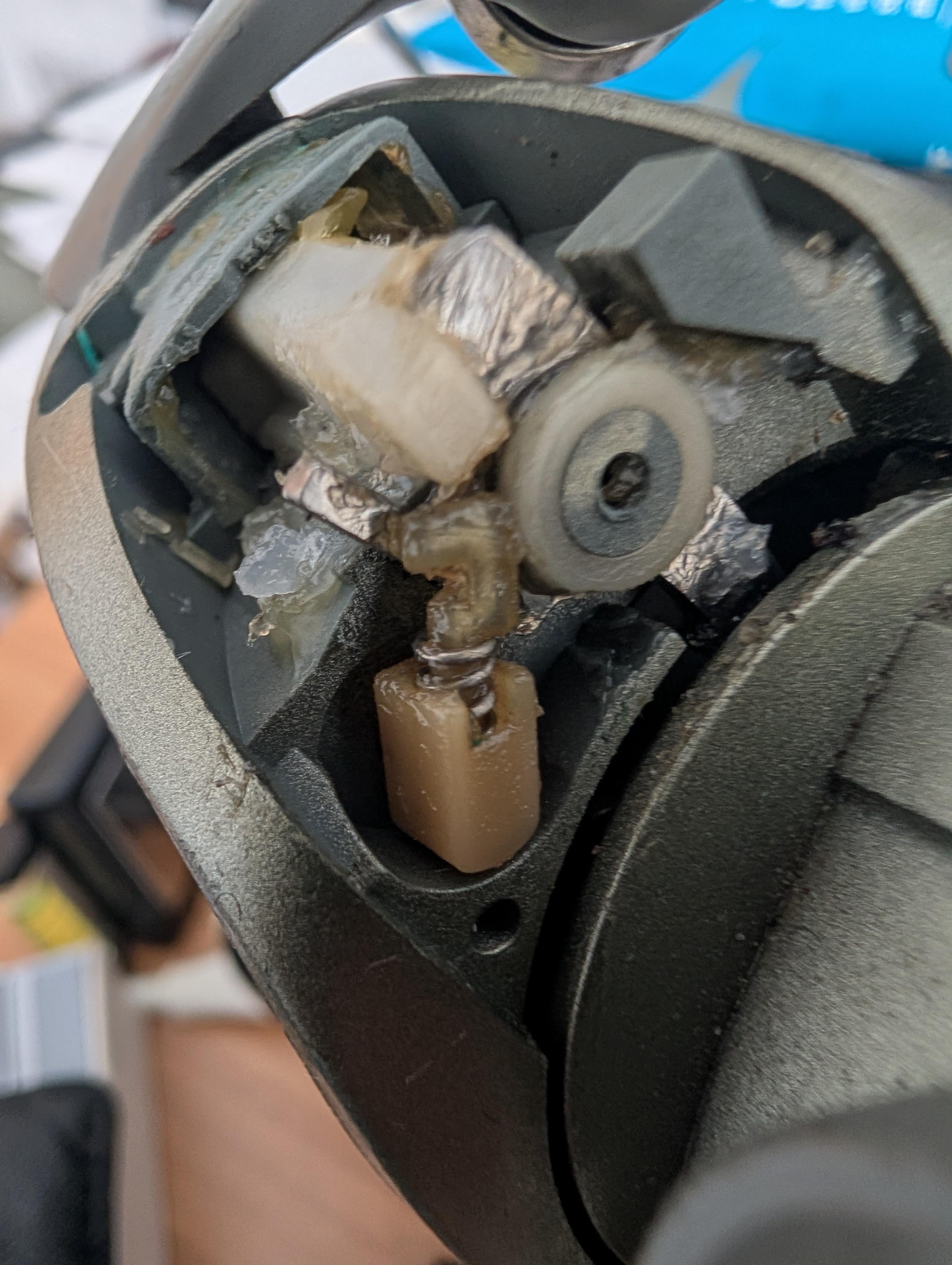 I was checking on the bail mechanism on my Shimano Symetre and the brown/yellow piece fell out. Anyone know where that hook goes?