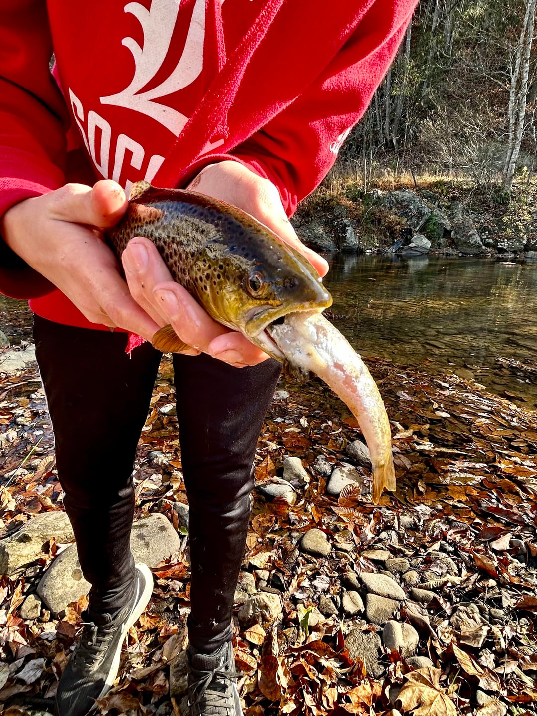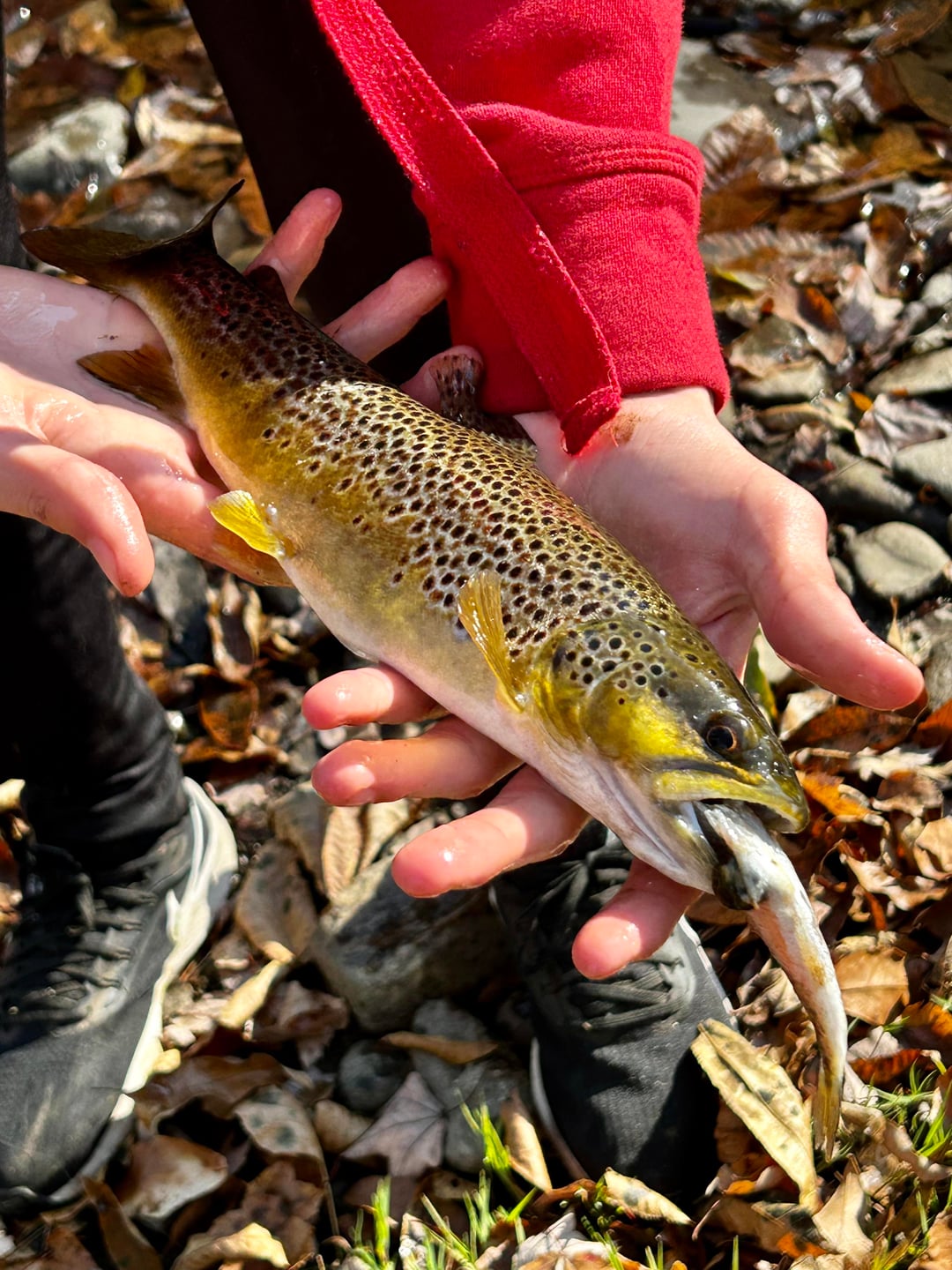 I have a pic somewhere of a ~16 17inch brown that regurgitated 6-8 rainbow trout smelt from the fight. He was stuffed literally to the gills, but browns gonna brown. Edit: Found it, unfortunately the majority of them were blocked by fish / arms in the pic but I cropped in. https://imgur.com/a/CzUyPPX