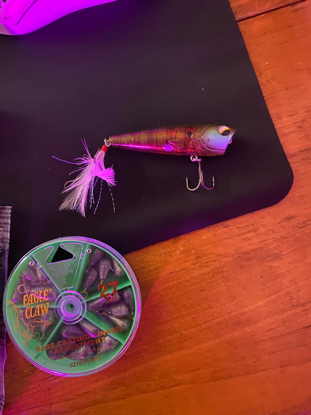 Until now my favorite lure was the Rapala jointed minnow (rainbow trout) which still is an awesome lure, but I’ve been smoking them lately with top water poppers. Nothing too crazy, few downward pops and steady retrieve with this popper. Included a few pauses throughout as well. There’s something much more fun about fishing a popper than a wacky plastic/Texas rig.