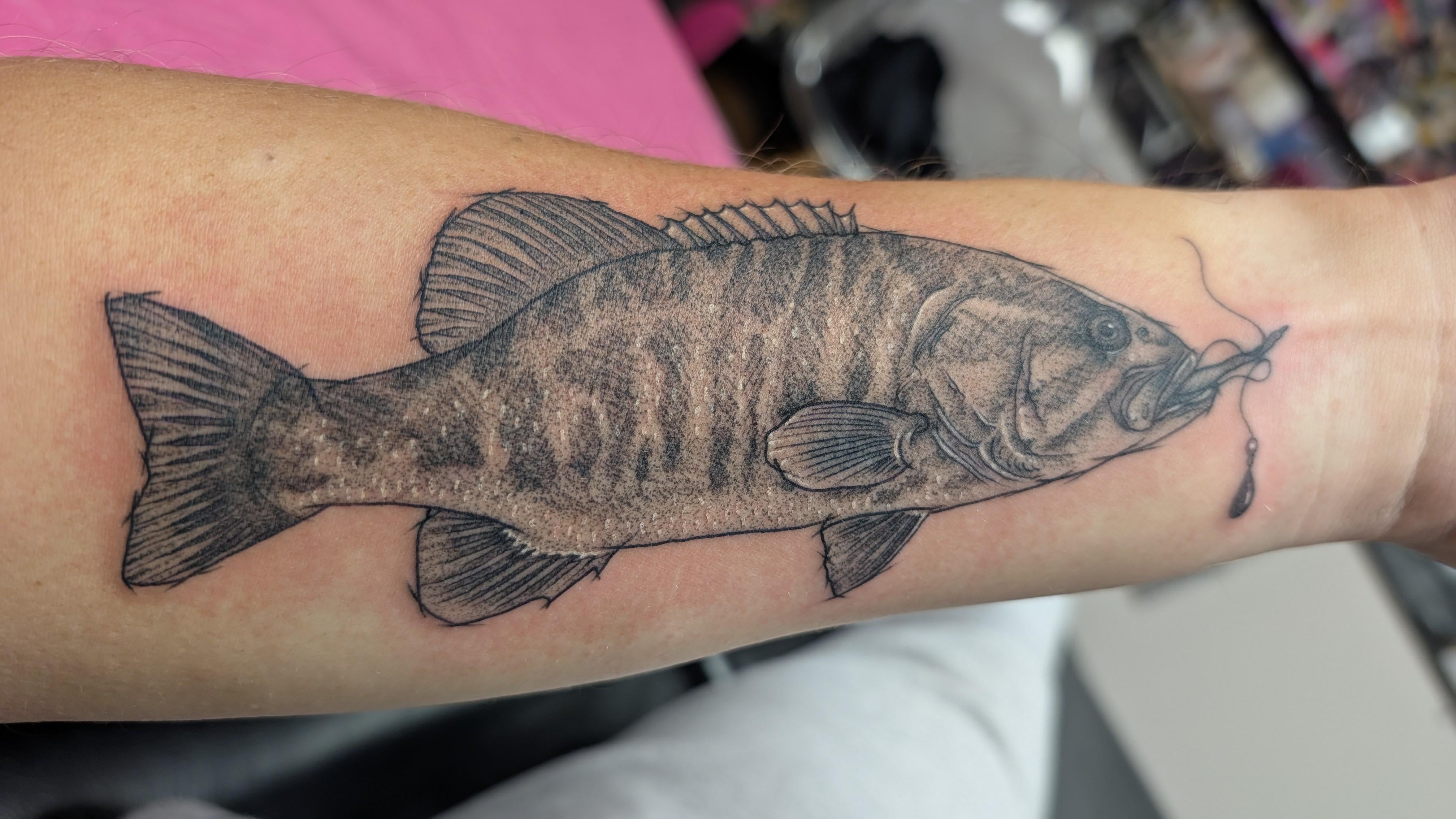 First tattoo ever to show my love for this fish! Smallies have gave me so much joy catching them! My kids and wife too!