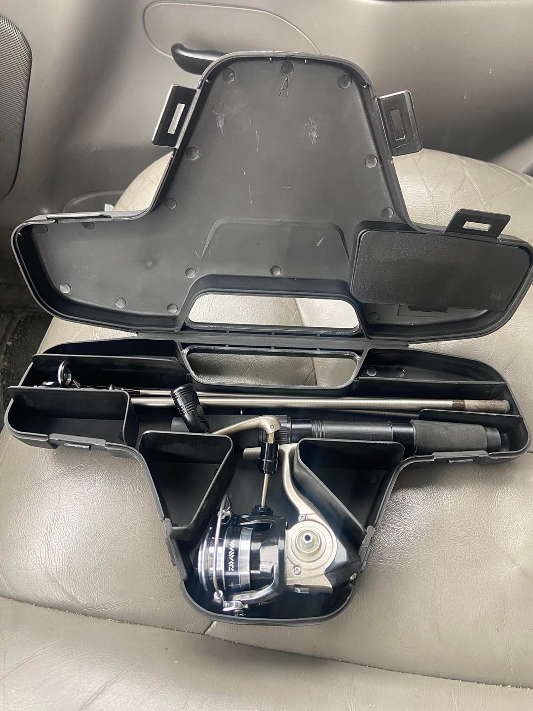 Daiwa has made these travel kits in various incarnations since about the mid 1970s. There has also always been a push-button spincast version (called Mini-Cast). I have kept them under the seats in my trucks for decades for unplanned fishing sessions. The only bad thing about them is the latches eventually break off the lids. I always end up wrapping bungee cords around them to keep them shut.