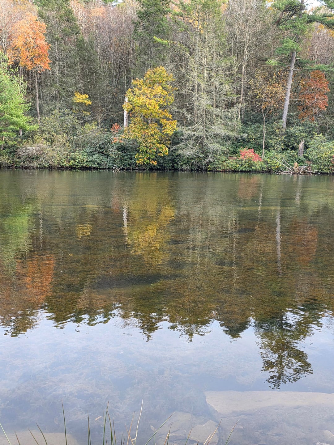 It’s hard to say, personally I would hike around and observe the water and the land. Is there anything floating in the water like bugs, frogs, etc? Are there terrestrials (grass hoppers, spiders, ants)? What is in the water, are there minnows, larvae, crawfish? Lastly if you can observe what the fish are eating. Are they eating off the top or are they down below. Based on this information search for lures or flys that will match what they are eating.