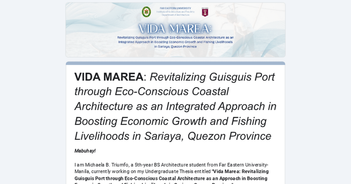 hello po! 5th yr arki student here currently doing my undergraduate thesis about fish port redevelopment.