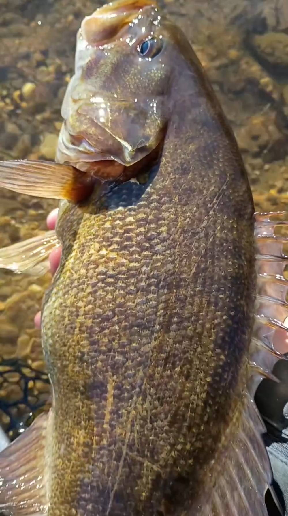 Went out for 5 hours on the river. Caught two smallmouth one just under 18" and one just over 16". This was the biggest one. Not the longest fish but very fat! Ready for winter. Freezing temps have made the bite tough. Caught this football and now I'm chilling watching football and enjoying a beer. Life's good.