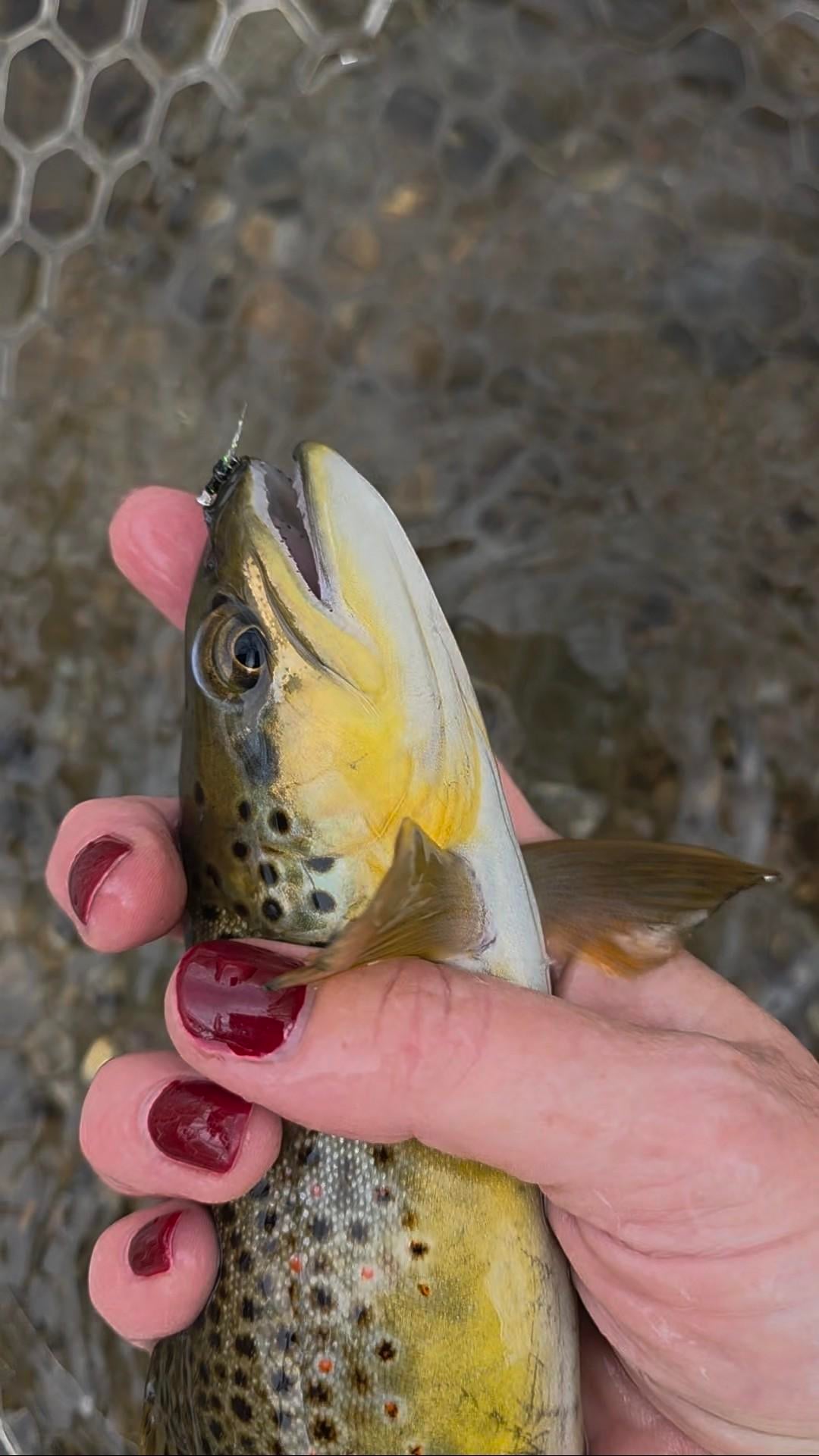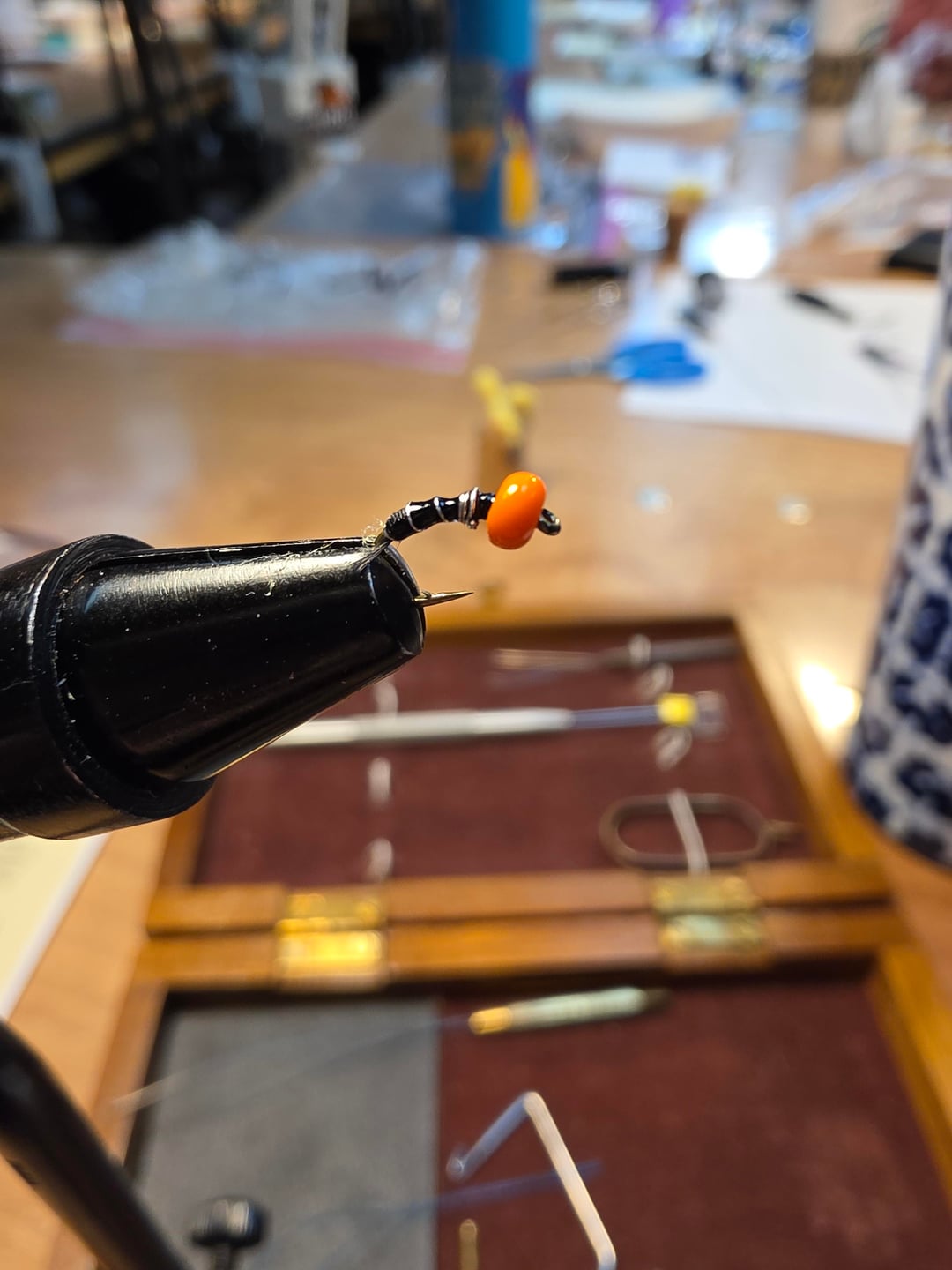 First pic- zebra midge with iridescent wings. Second pic- the "Pumpkinhead", a truly jacked up looking fly that I threw onto my dry dropper today half as a joke and laughed maniacally when it worked. 🤷♀️