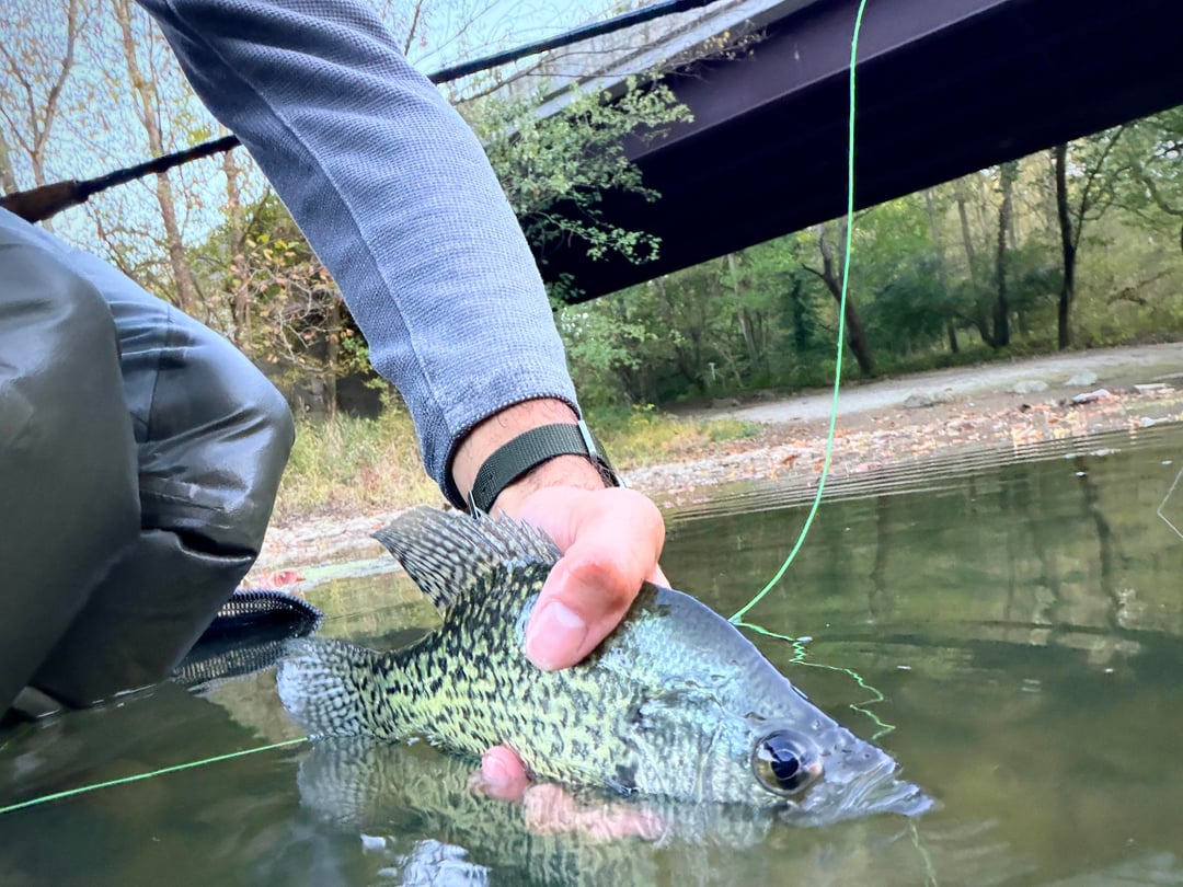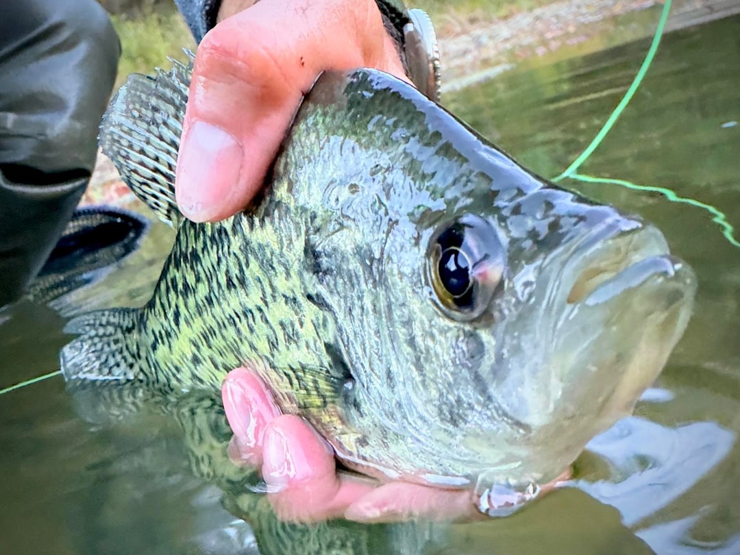 I was targeting smallmouth bass with some crayfish flies tonight, but ended up catching black crappie instead! I tied on a #8 Near Nuff Crayfish with a #6 Come at Me Cray dropper under an indicator. The take was rather subtle and just sort of caused the indicator to slightly bob, but they put up a little bit of a fight once I started stripping them in.