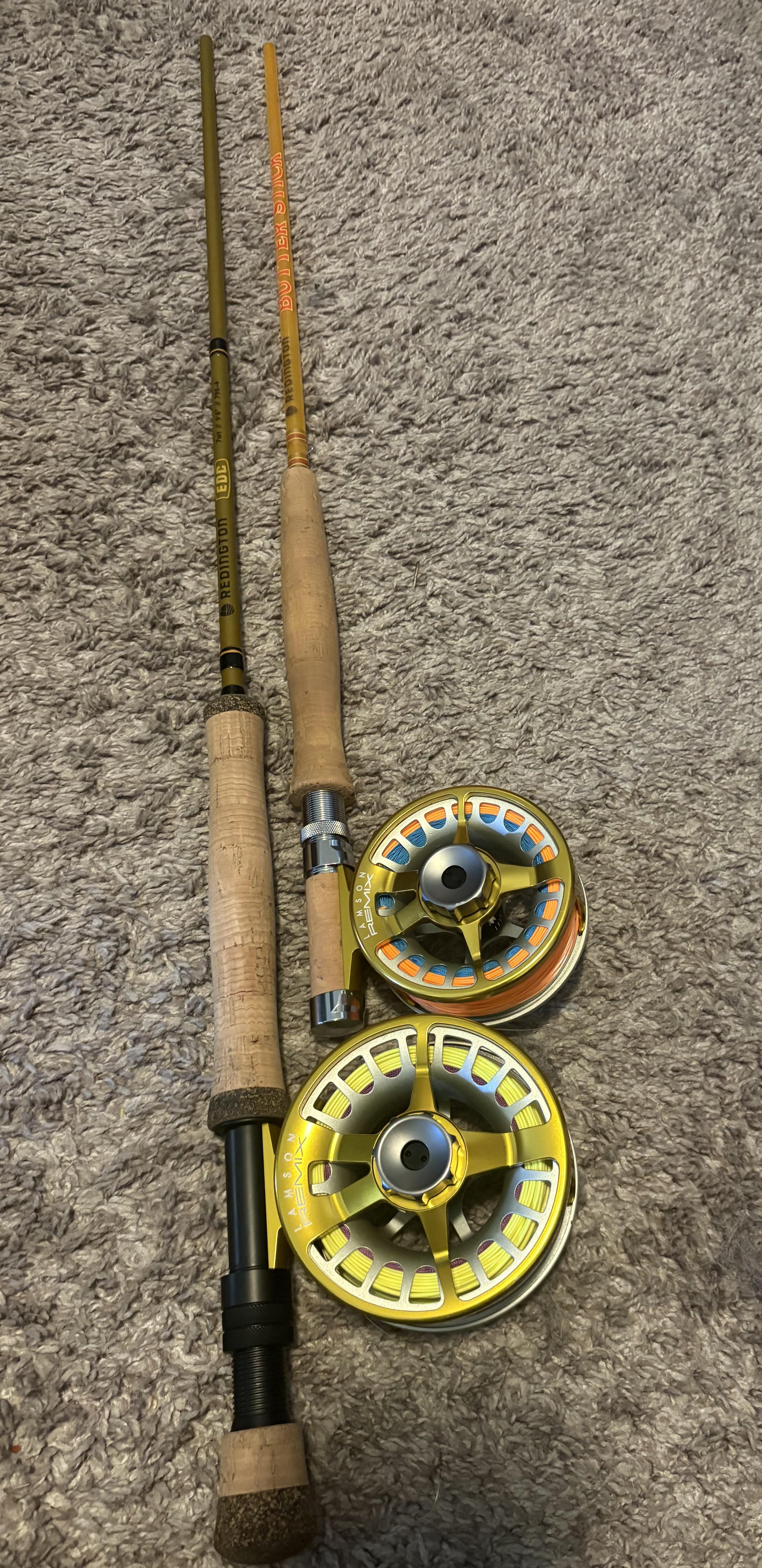 Redington EDC 9’6” 7WT, Lamson Remix -7+. Redington Butterstick 7’6” 4WT, Lamson Remix -3+.