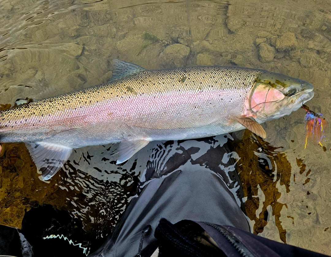 A couple nice wild west coast steelies from a recent trip. I have yet to experience anything in fishing more addicting than that grab on a swung fly. Posted by DougNeedsADouble