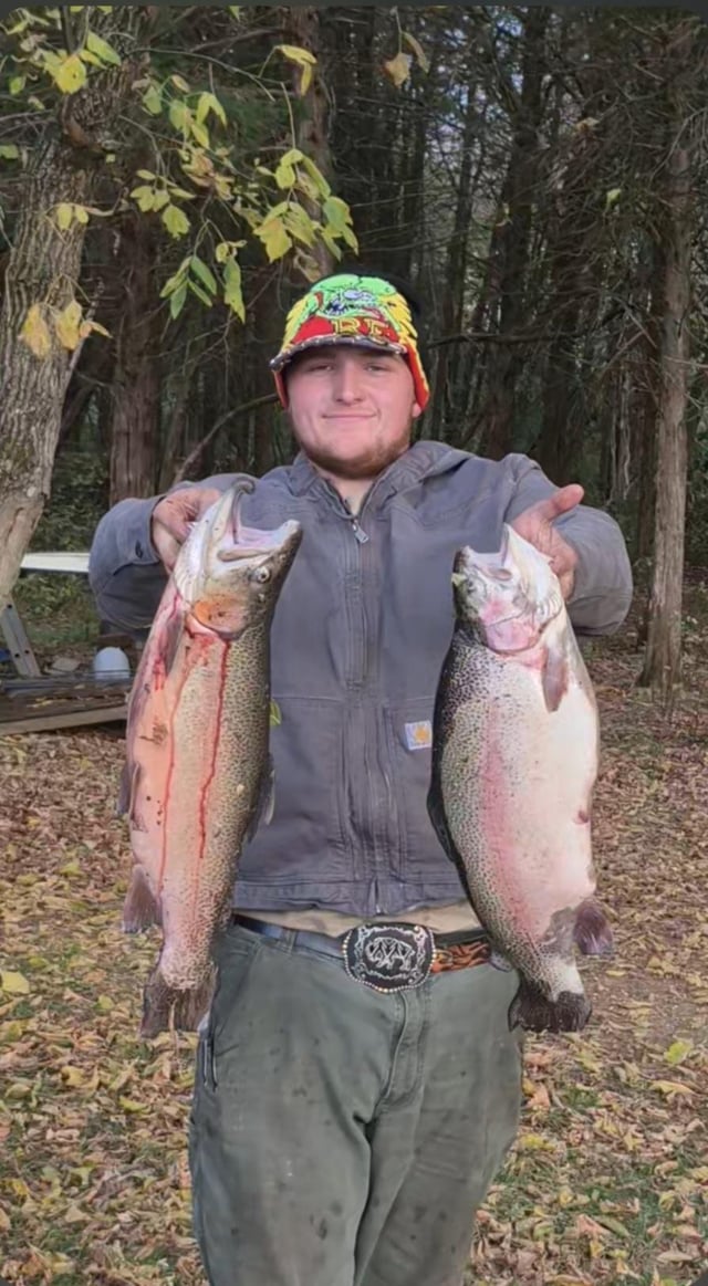 Fishing for stocked trout in the WV Eastern Panhandle, caught 2 large trout that I kept that weighed 8.36lbs at 23 inches and 5.99lbs at 23 inches. The brookies were gorgeous!