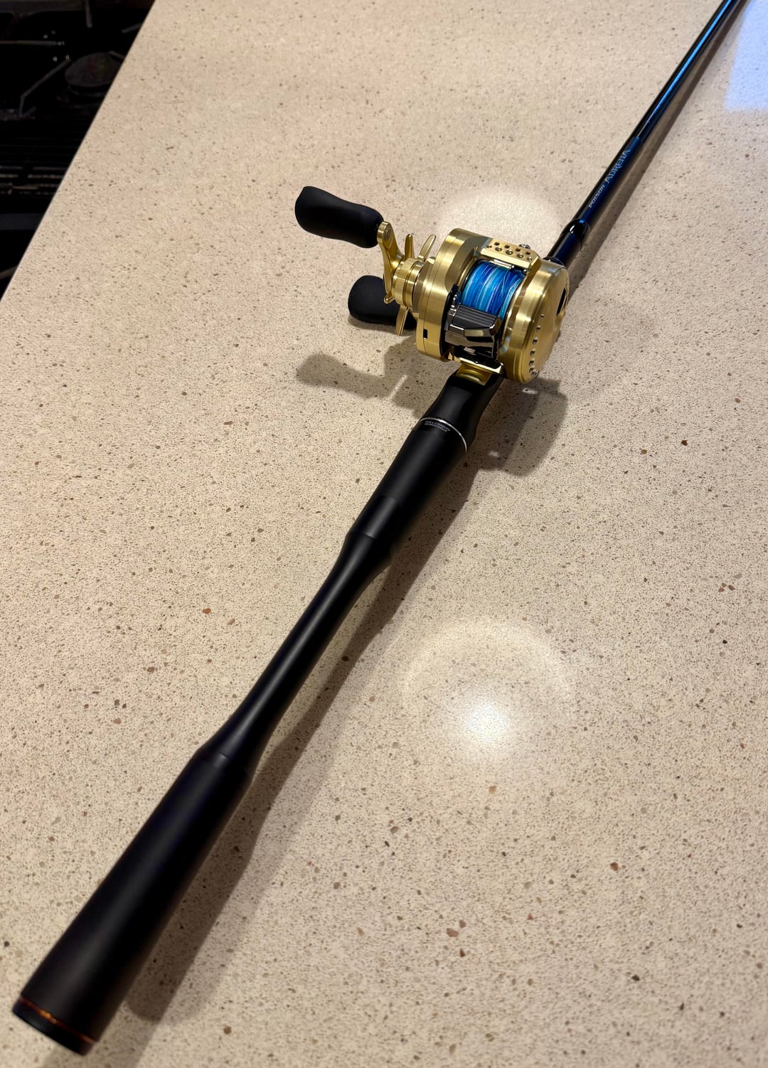 Shimano Calcutta Conquest 201HG with a 7’2” heavy Shimano Poison Adrena.