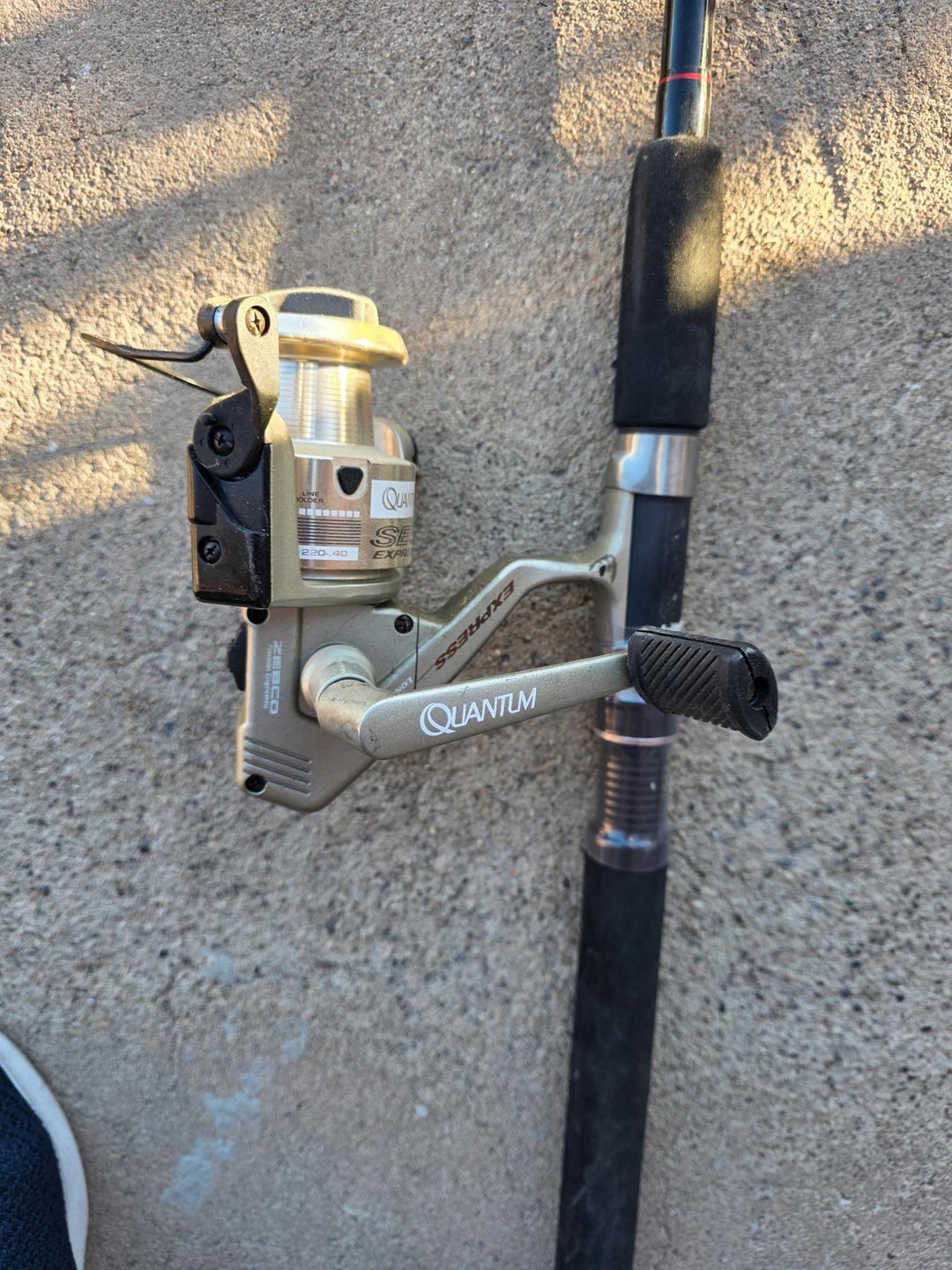 1. That’s a badass fine just for the real itself my guy. Great real don’t know much about the rod. Looks like old school stuff. Nice. Heavy rod though. Probably made a fiberglass or something similar. The real doe is nice. Quantum makes some good stuff. Bill dance, made quantum what it is today. I do believe