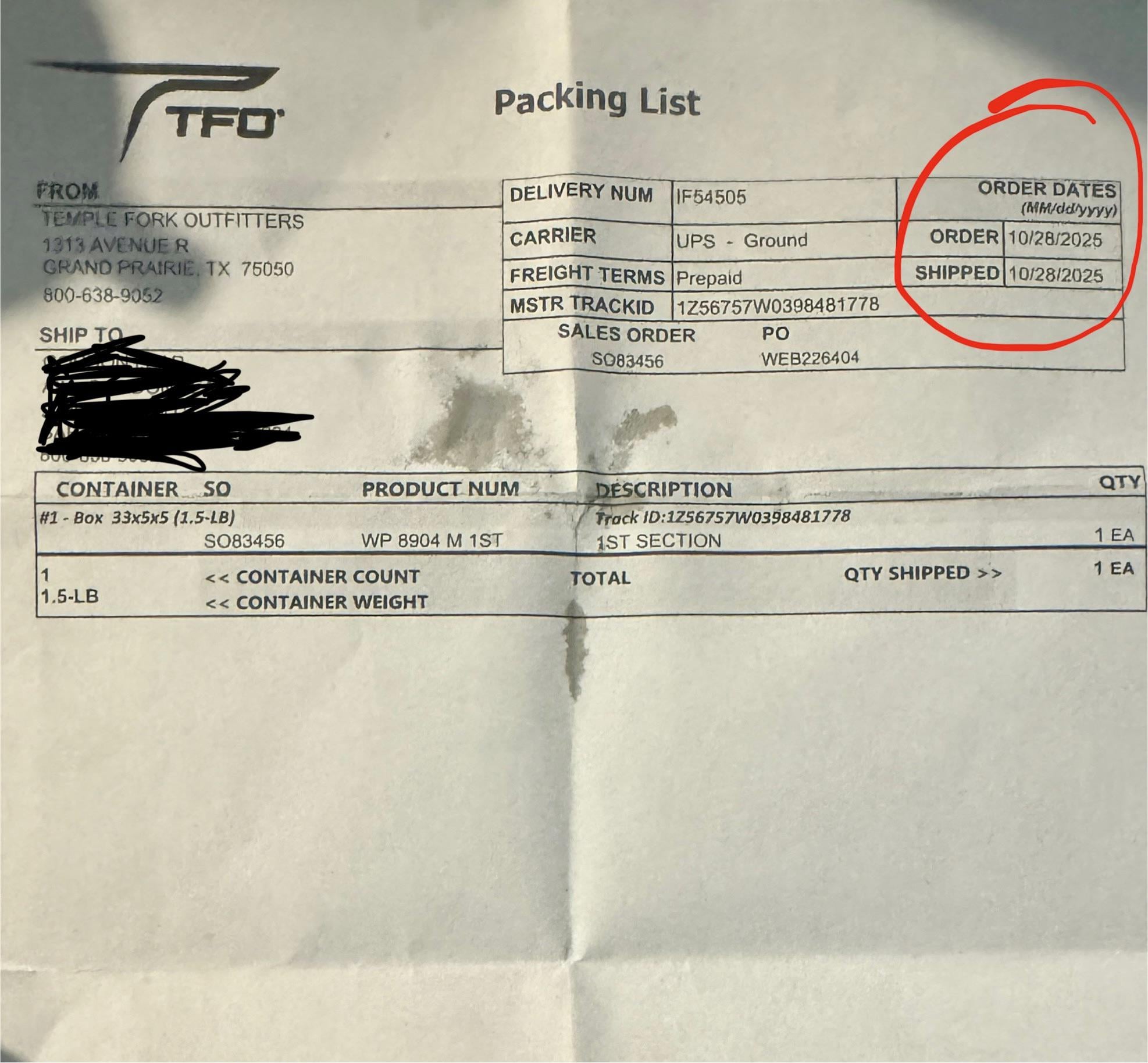 This is the third tip I have broken and each time TFO has made it so easy to replace and they dont mess around. Check out the invoice, it was shipped the same day.