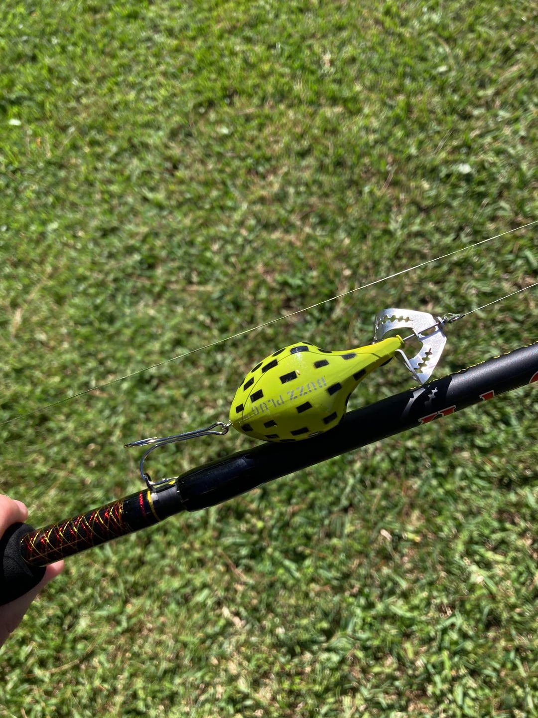 Don’t use buzz baits, use weedless soft plastic frogs so you can drag it right across the edge of the lily pads and grass where the fish hang out.