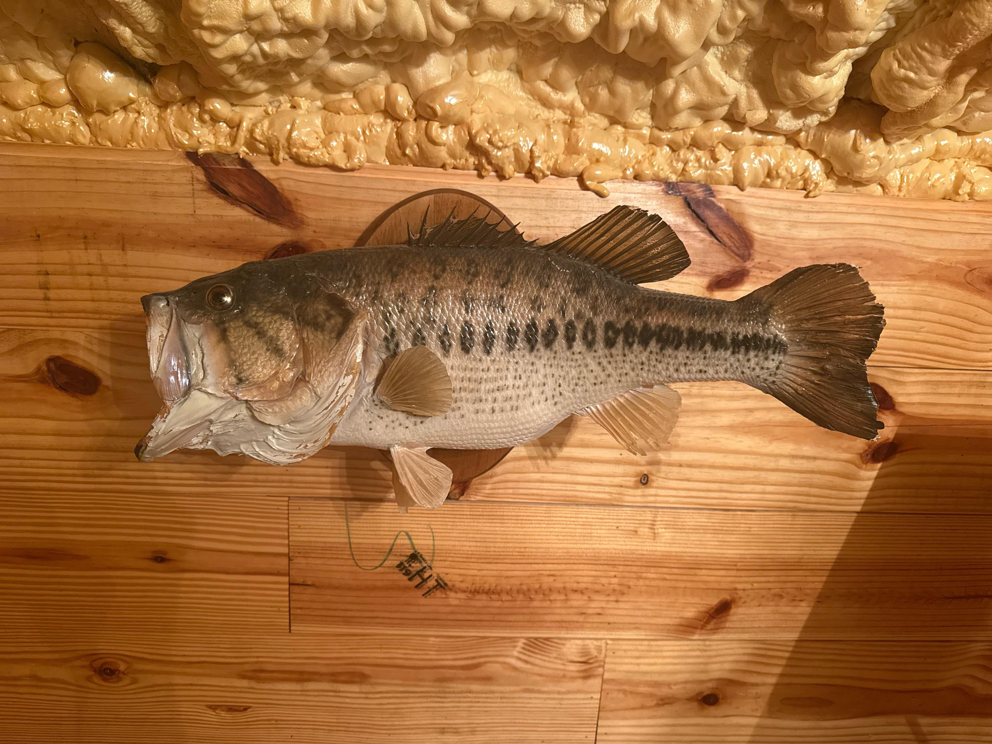 1. Coloration looks like a spotted bass based on what I see on google image searches, but that is the mouth of a largemouth. So if this is a reproduction, I would say they used a largemouth model and painted it to look like a spotted bass. I’m am no expert, though.