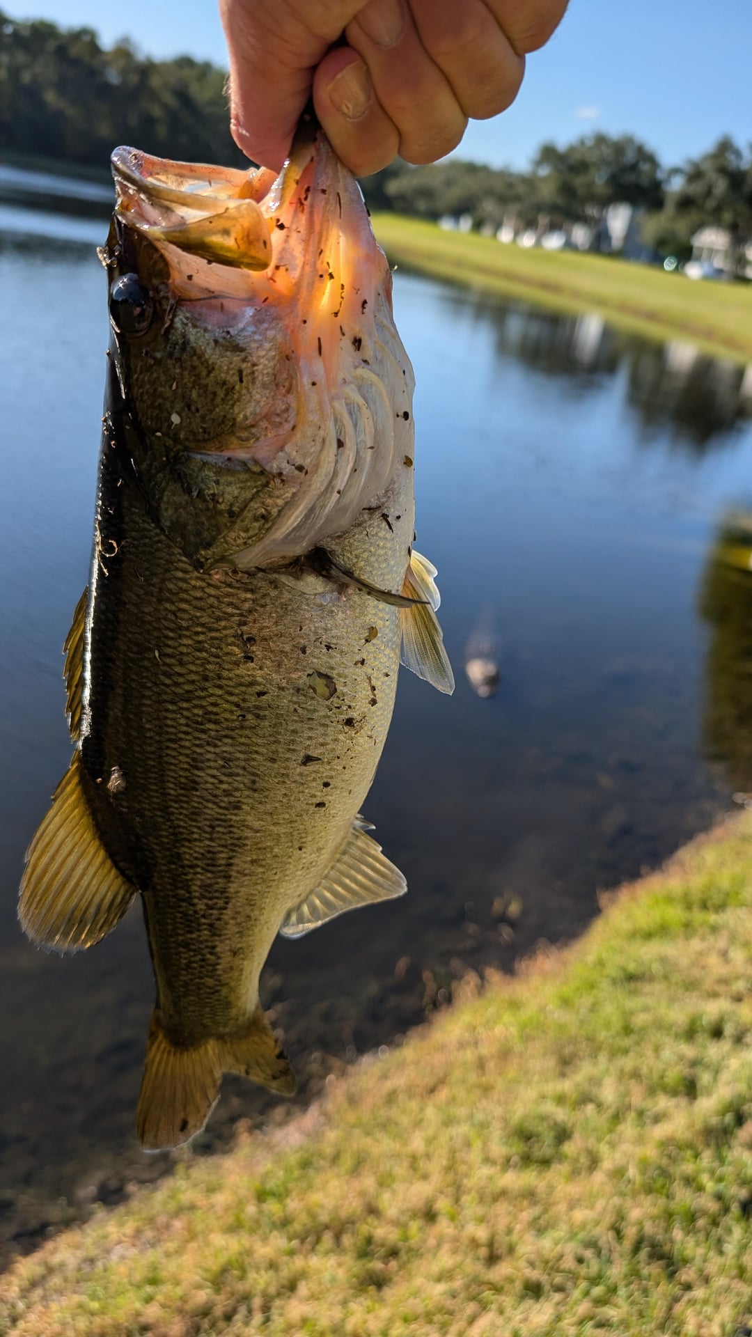 I caught this nice size largemouth right by my office. It was putting up a good fight and took a minute to reel in. As I grabbed the fish out of the water, this gator rushed right at me.