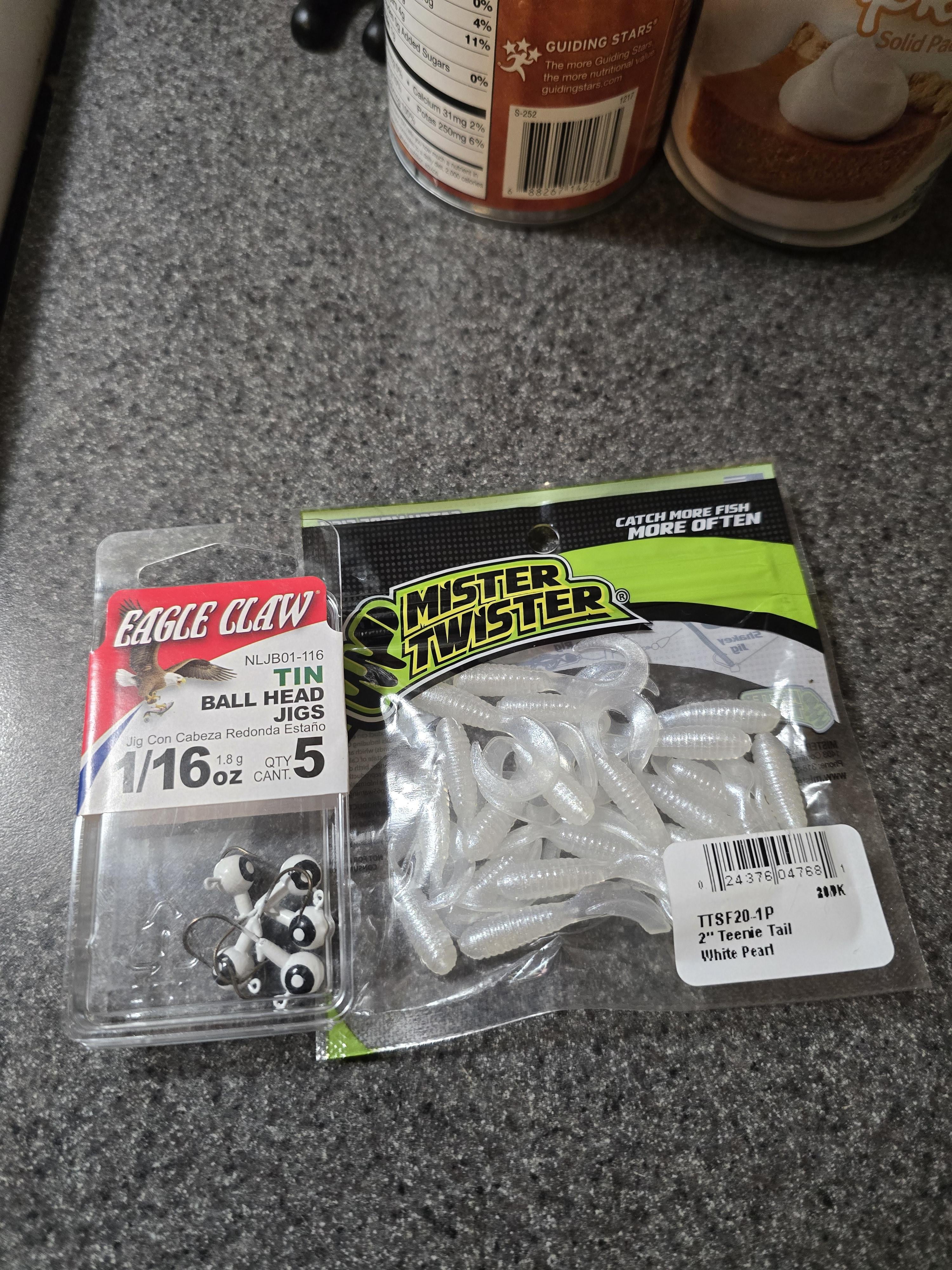 Awhile ago I tried some of these mister twisters but I think I had too big of jig heads so I bought these 1/16oz ones will they work together? I'm using 8lb mono it's the only thing I have at the moment is that too heavy of line? I'm ideally trying to target perch or panfish/anything else that will bite