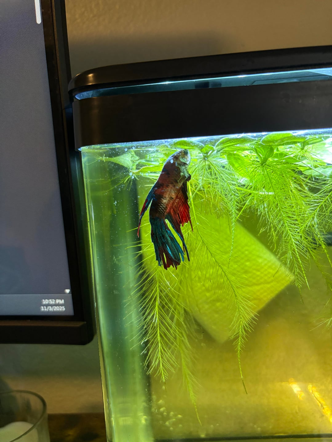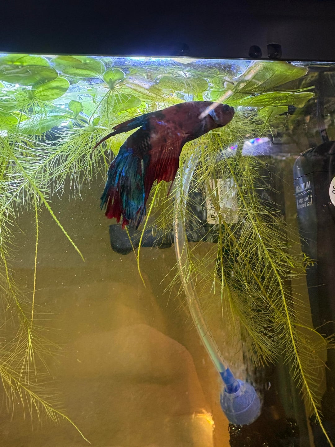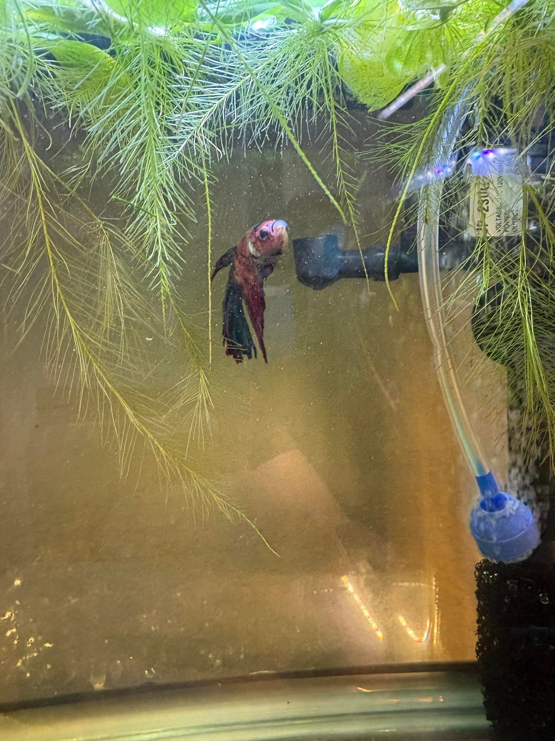 Hi everyone! I've been an avid keeper of bettas for about 8 years and have had extreme success treating fin rot with jungle fungus clear in the past, which unfortunately looks to be discontinued or out of stock everywhere I look. A friends daughter "gifted" me this cutie who has (what looks to be) one of the worst cases of fin rot I have ever seen. However, in the past I've seen black dead fin or melting along the body, but I'm not seeing that much with him…? He lives with 10 cherry shrimp in a heavily planted 13 gal tank and I've never once seen him nip his fins or lose a chunk quickly. Water parameters are all in check as well and I have proper oxygen input. I test my water every other day, if not daily. Sweetest boy; eats a ton and is very lively. I've done the typical 70-80% water changes, dropped temp to about 73 (I know it's a little low, but the negative gram bacteria struggles to grow in lower temps from my understanding), and dosed aquarium salts. However, he hasn't gotten much better. I've now hospitalized him and have used kanaplex, which is a medication brand new to me. I've seen many people in this sub have a ton of success with it, so I figured I'd give it a go. My question is; what should I be looking for? Any signs of regression that I should watch out for? I've never treated a fish this far gone, only mild cases that I've caught early on. He's only on his first dose but I don't see any clamping or signs of stress; maybe a little lethargic or the occasional quick dart but that's really it. I've got almond leaves on the way for some healthy tannins and a good hide for him in the hospital tank. Any advice is extremely helpful as I would love to see this boy in his prime again! (He's about 6 years old!)