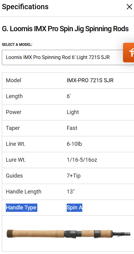 I am looking at rods online does anyone know the meaning for handle type? I see it goes from spin A,B,C,D etc.