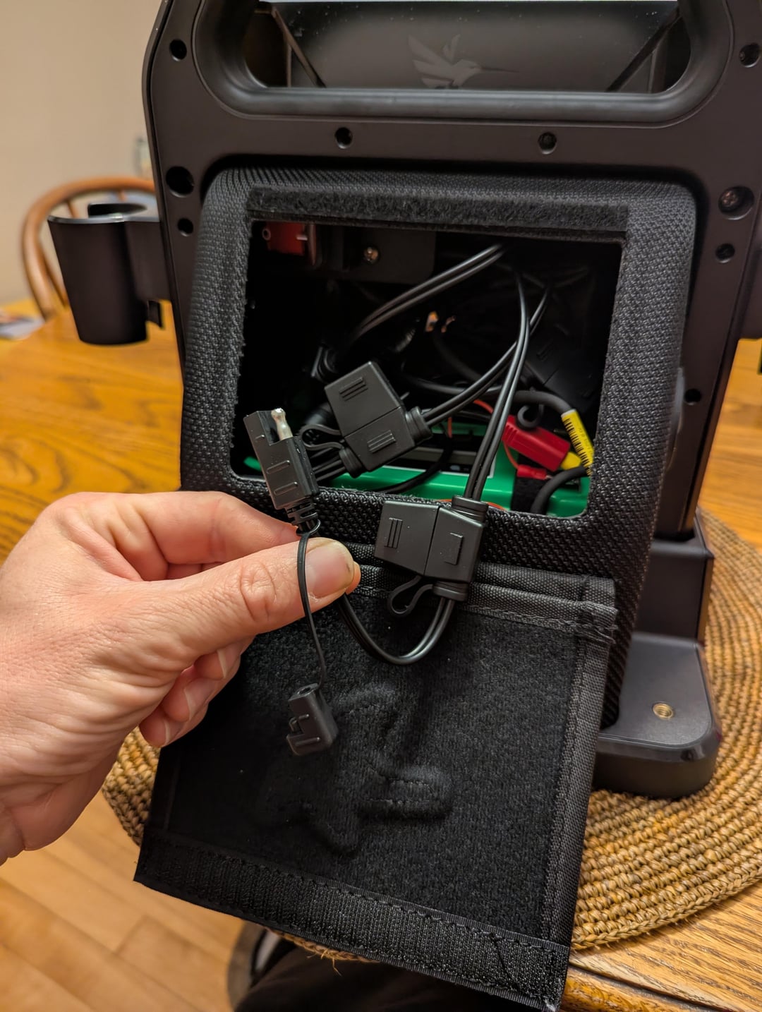 Get a 2 pole flat connector and you can wire it up yourself if you can find a light that doesn’t run the wire through the bolt. Most 1/4-20 threaded camera lights will run the wire through though.