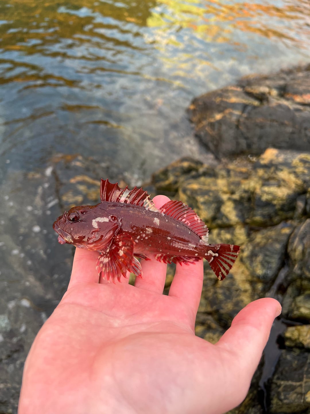I believe this to be a juvenile cabezon after extensive research, although my understanding is that it can be extremely difficult to pinpoint sculpin species when they are young. Regardless, this is the prettiest fish I’ve ever caught!