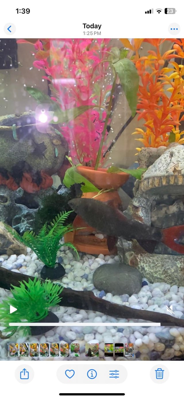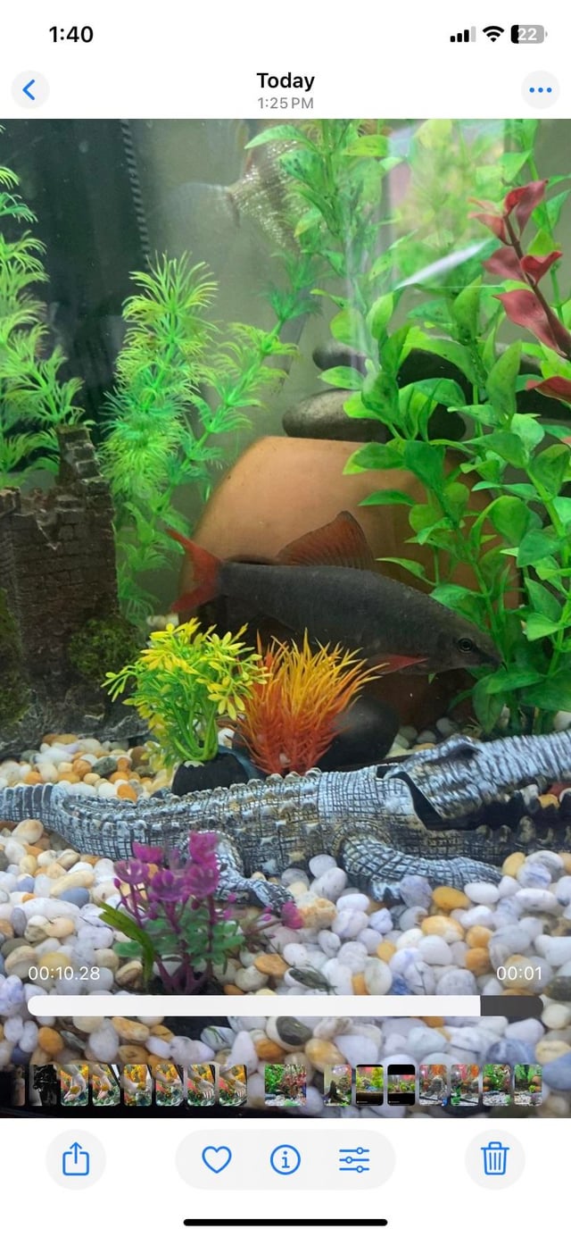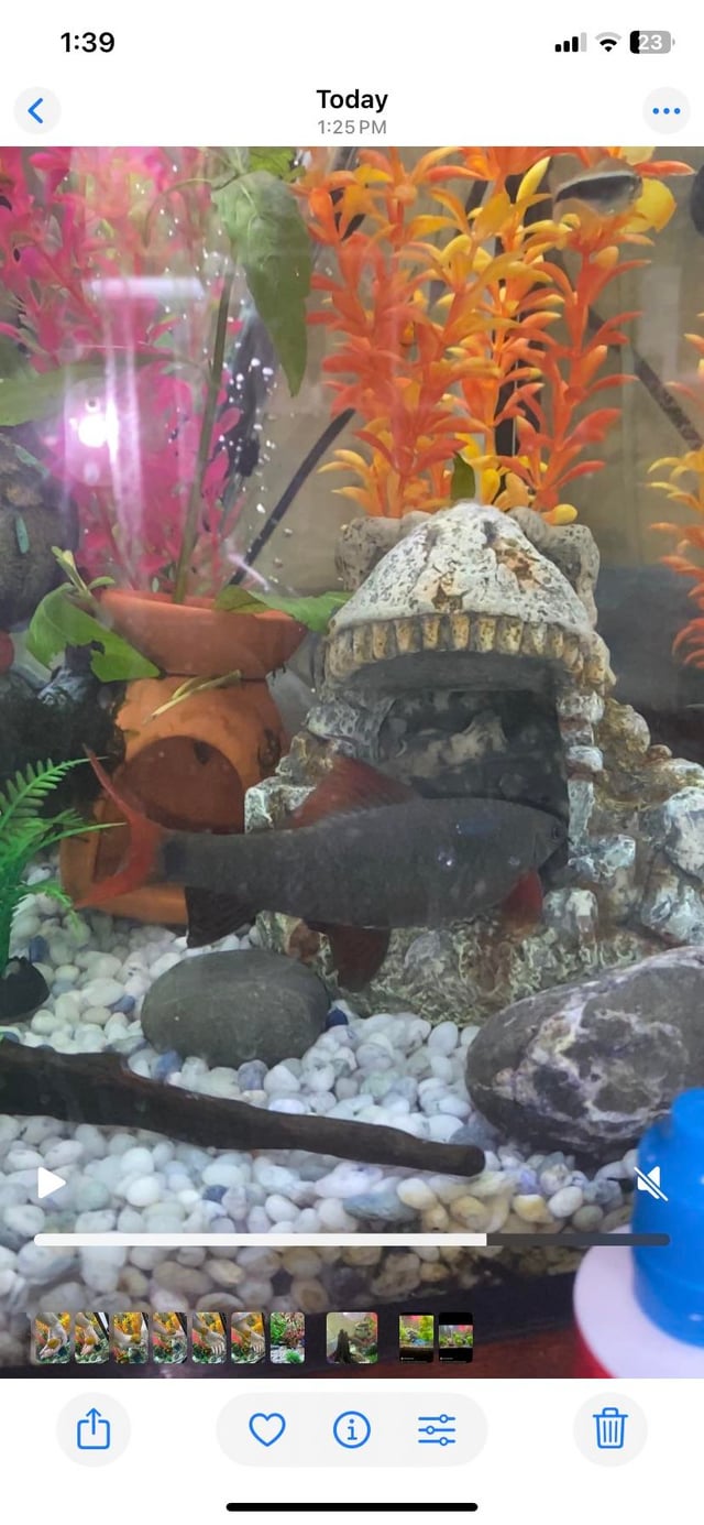 your shark also seems to have a mild skin infection (the grayish patches/’spots’). make sure you’re not overfeeding. that shark’s a tad obese, indicating over feeding, which, with a lack of appropriate water changes, can lead to a more septic environment=bacterial infections.