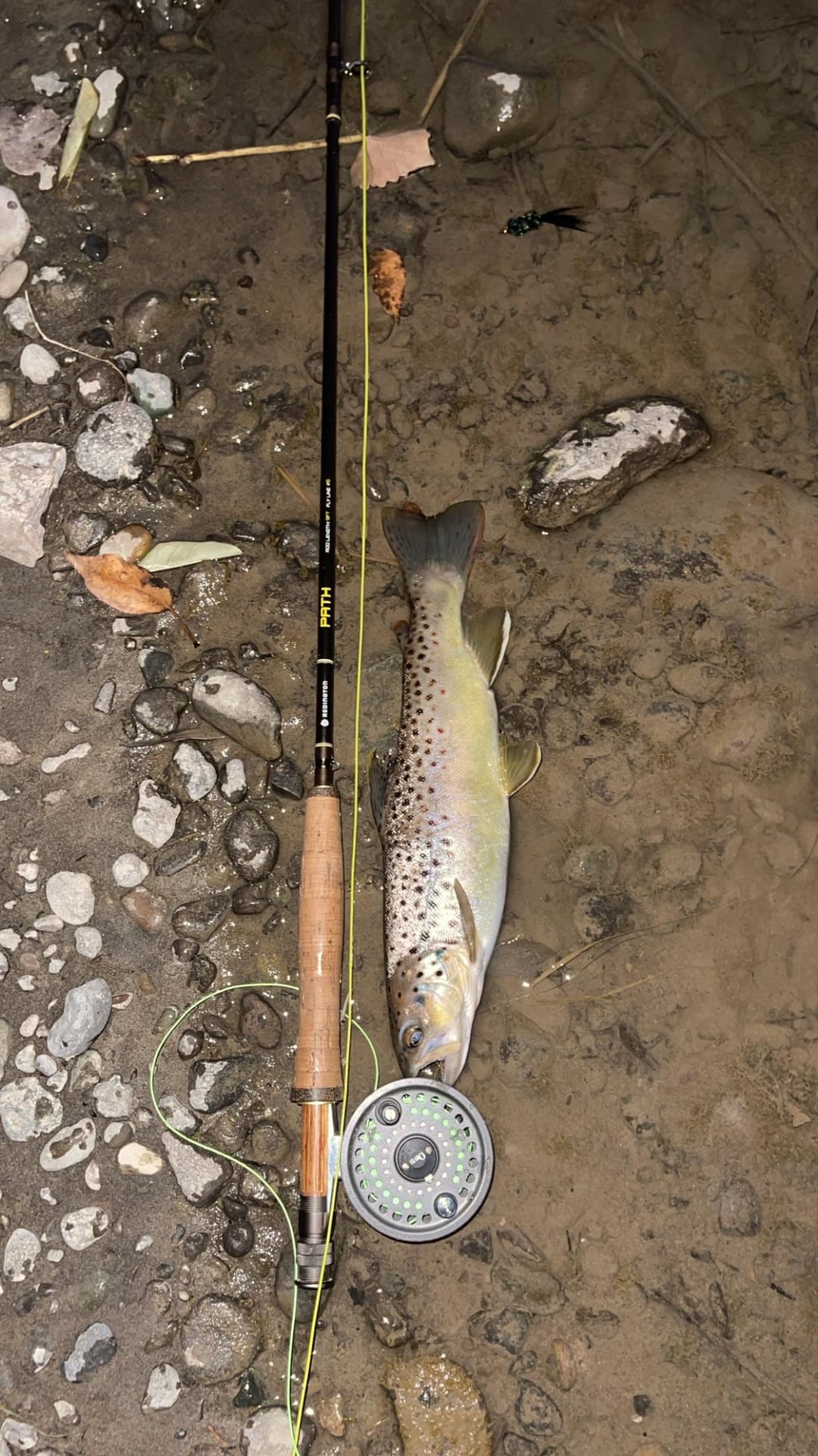 I’m not gonna lie, I was shaking a little. I remembered to keep my rod tip up and started stripping, and everything just clicked. I didn’t have a net yet, so I did my best to handle the fish carefully — washed my hands before touching it, took a couple quick pictures, removed the fly, and let him go. He swam away fast and strong.