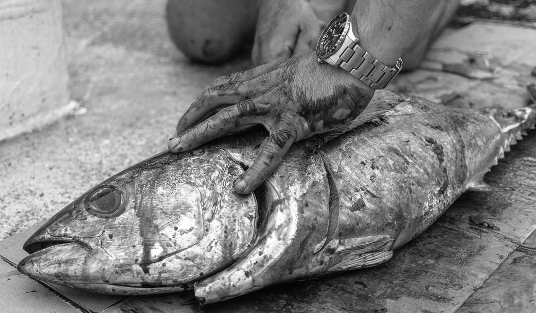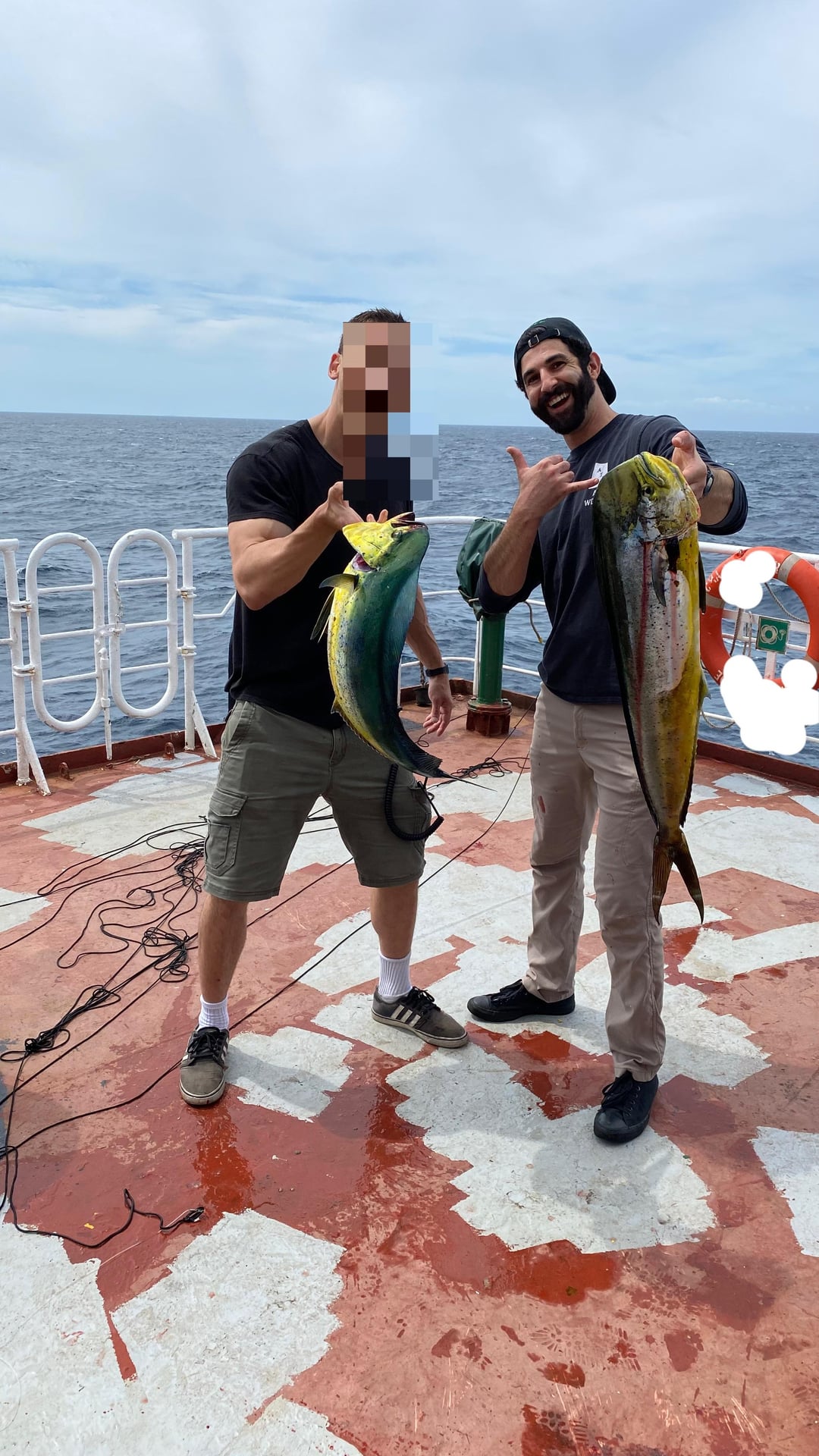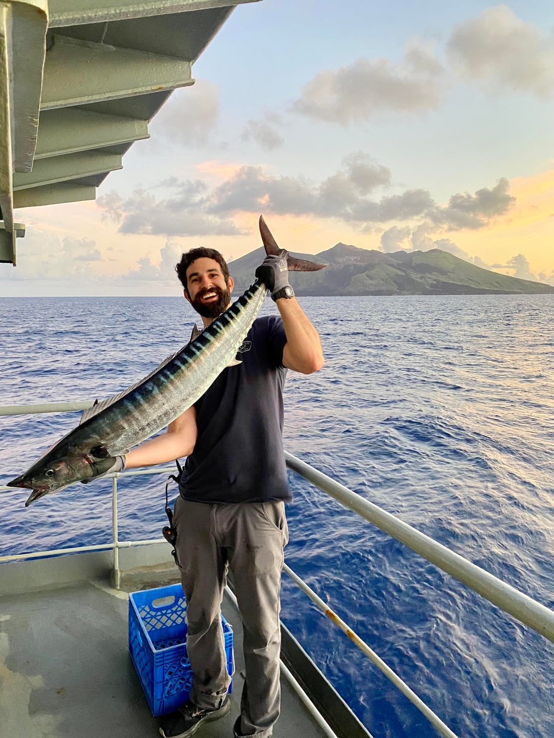Generally caught trolling handlines off the stern at dead slow ahead ~6-8kts. Wahoo was caught off a tiny Japanese volcanic island in the middle of nowhere. Mahi were near Guam and tuna were down by Baja on our way to the Panama Canal.