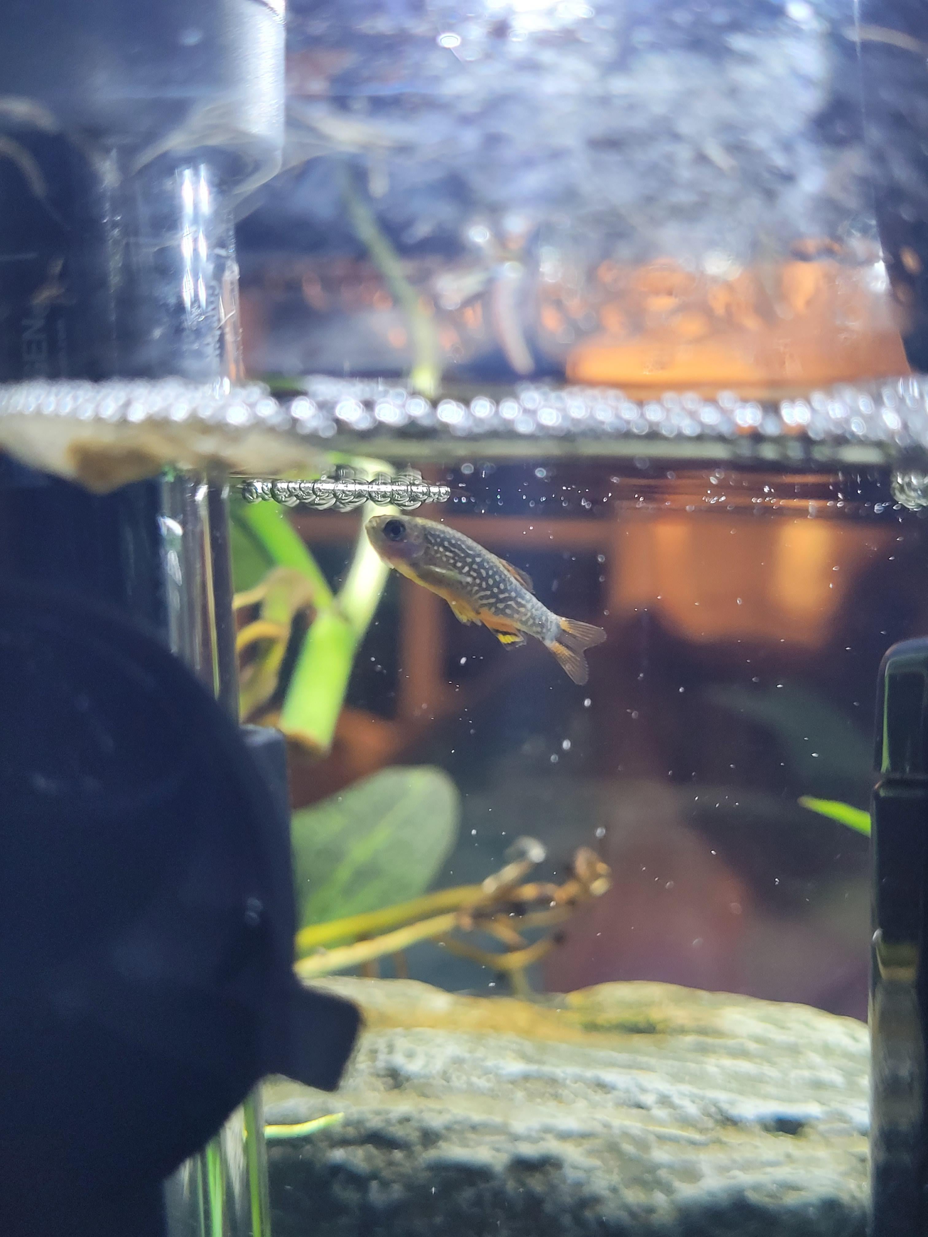 One of my galaxy Rasbora has developed a white film on it's tail. It seems to struggle with swimming, having its head above its tail. It also has been hanging by the heater since this has happened.