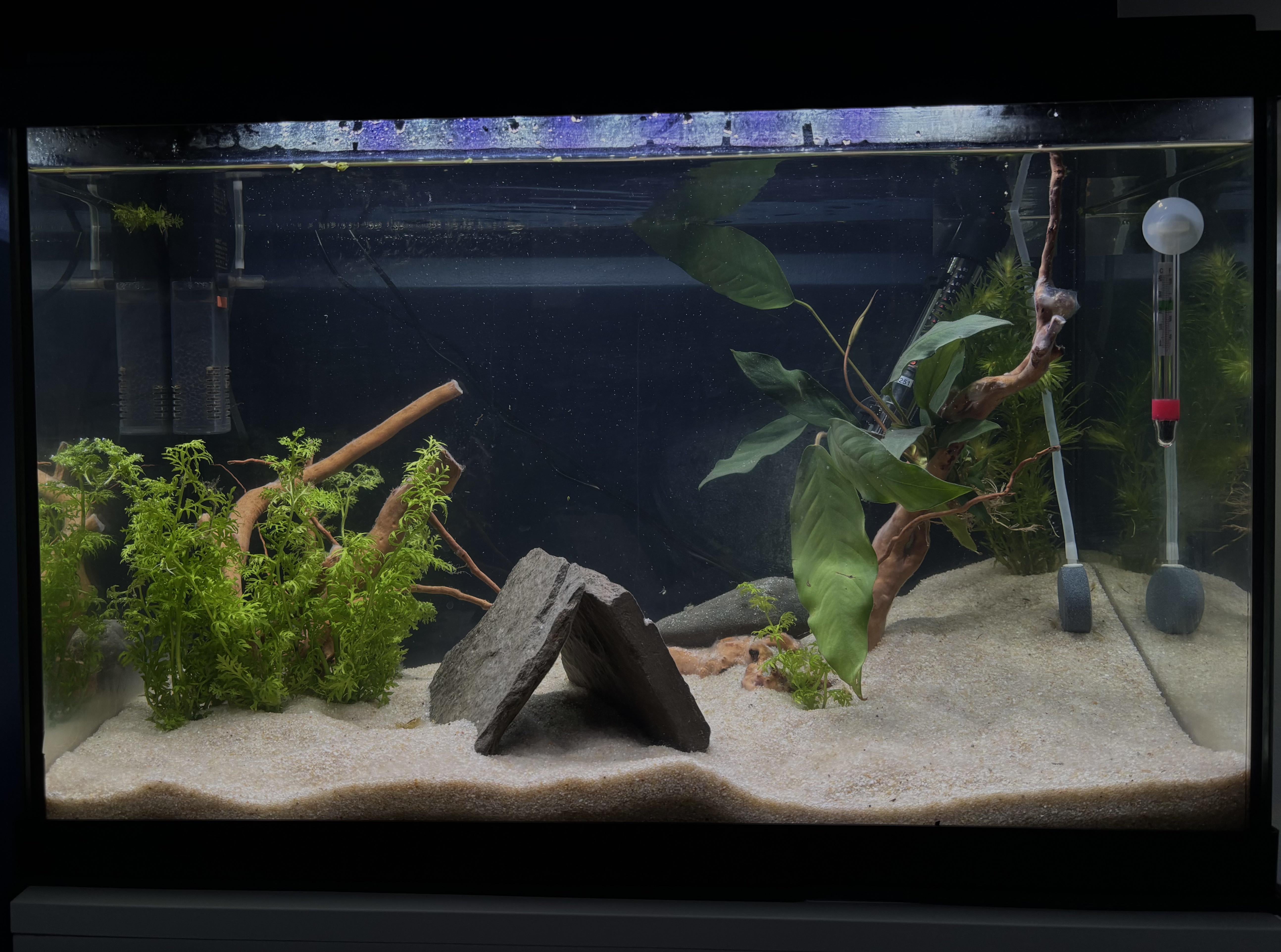 I think some floaters with long roots could help fill it out a lot without being to obstructive. Maybe some water lettuce or frogbit đ